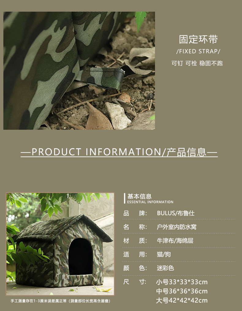 放浪猫の巣屋外防寒防雨犬の巣迷彩オックスフォード布閉鎖ペットの巣四季通用ペットテント