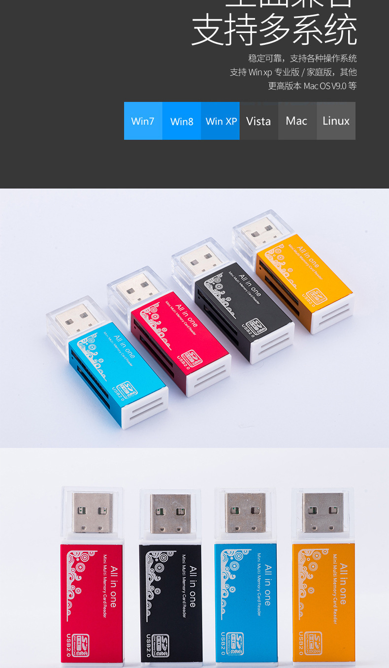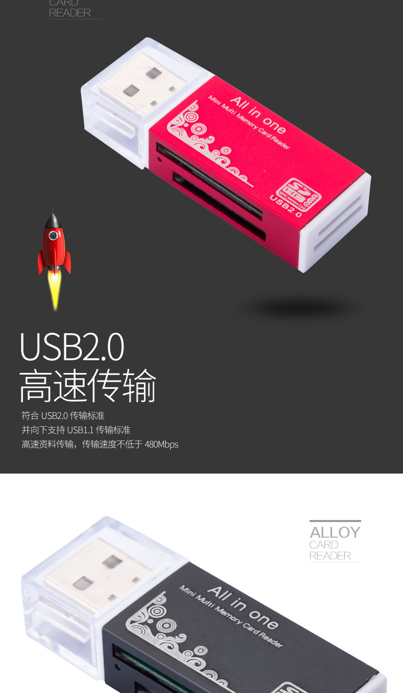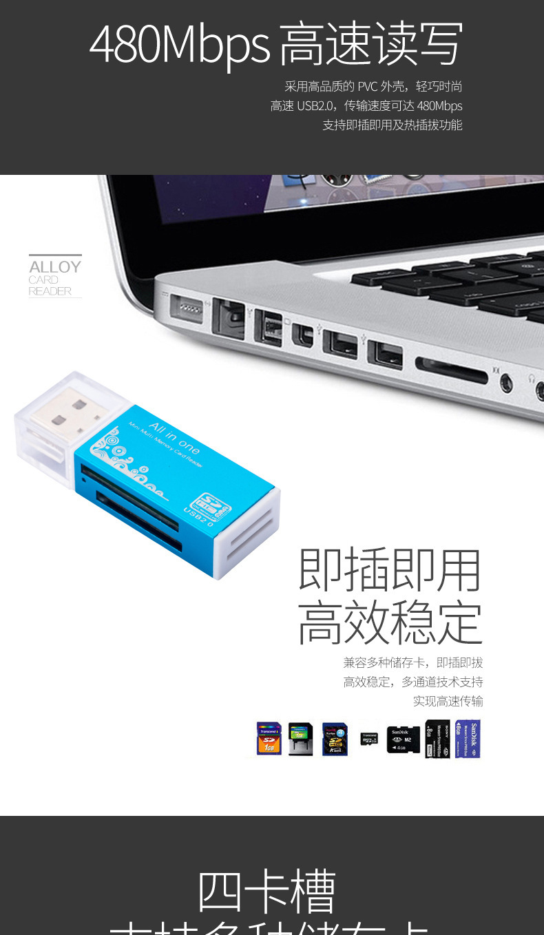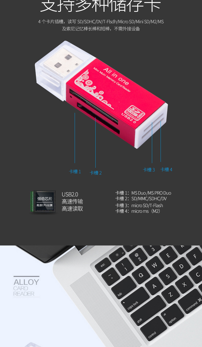 メーカー直販SY-662四合一多機能カードリーダー卸売りオールインワンカードミニアルミカードリーダー