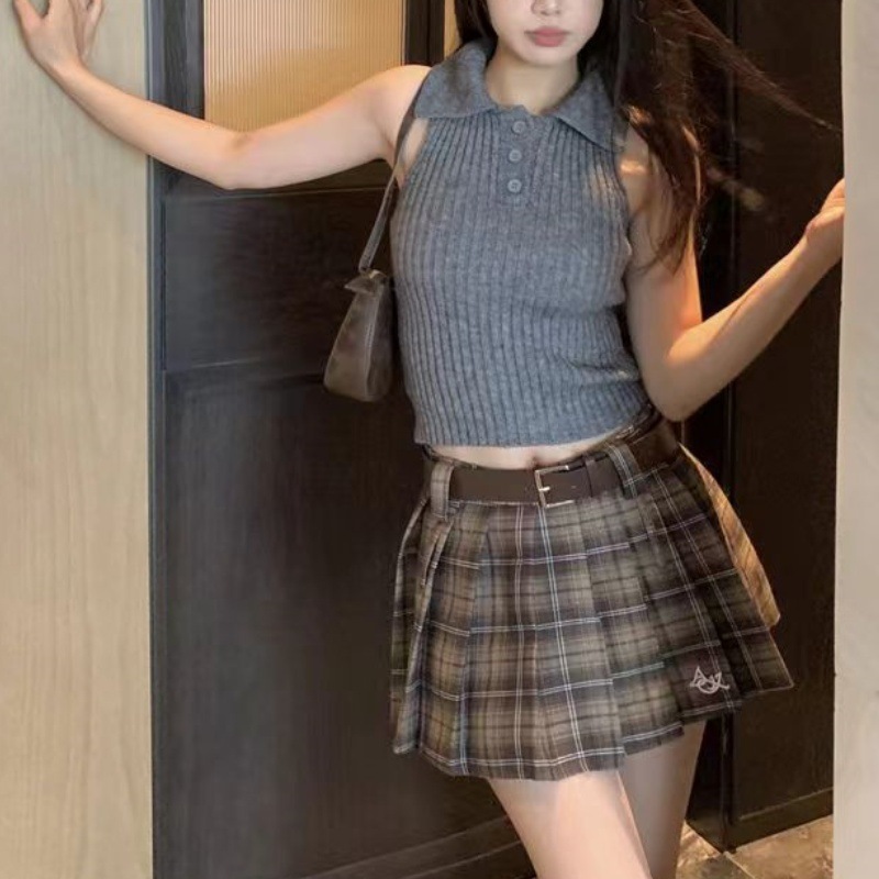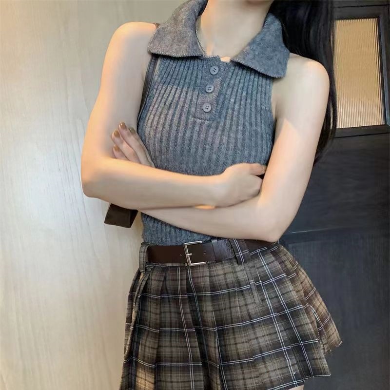 春の夏の新型アメリカのレトロな襟の短いプルオーバーは女性の秋冬のメリヤスのギャルを着てブラウスのベストを組み合わせることができます。