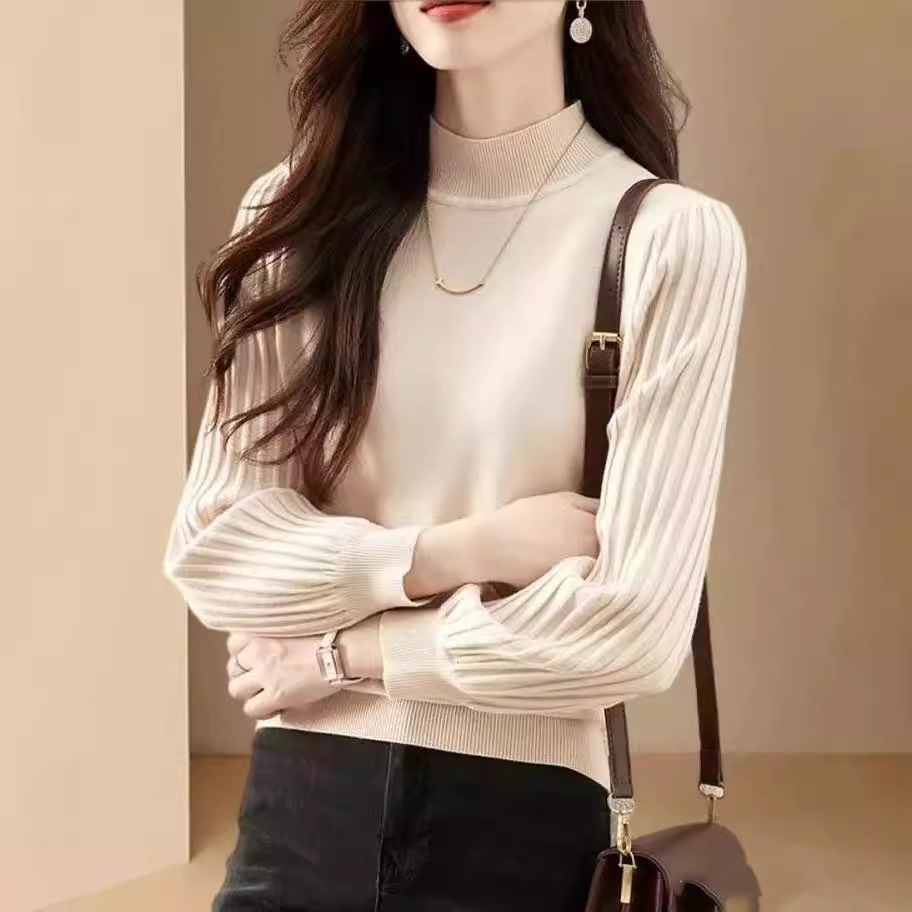 シャツを着ることができます。冬の春と秋の起爆セーターの女性灯籠袖長袖セーターの中に半高襟の上着を着ることができます