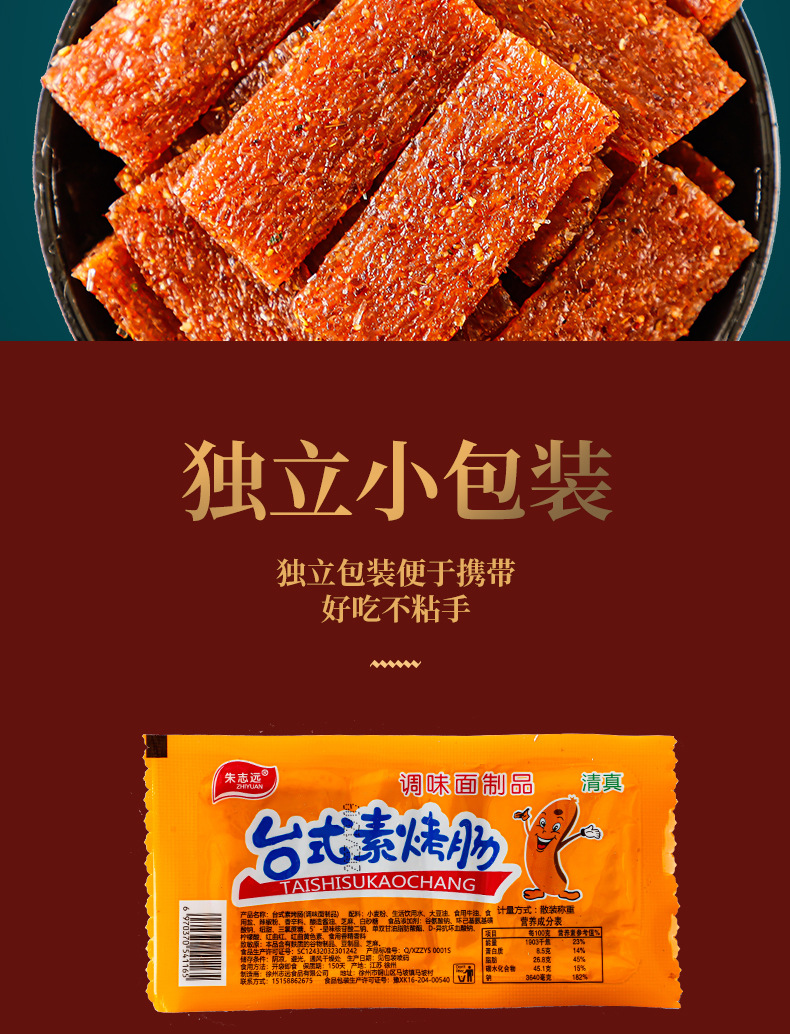 朱志源唐僧ベジタリアンステーキスパイシーストリップベジタリアンミートスライス昔ながらのスパイシースライススパイシーグルテンスライスノスタルジックスナック