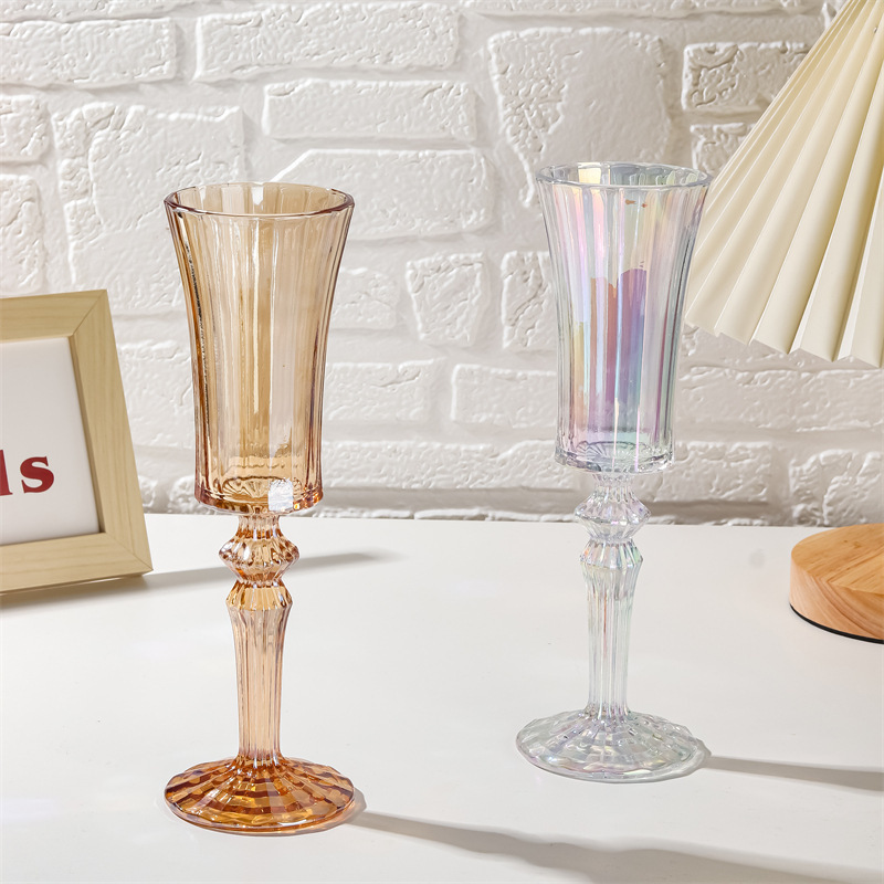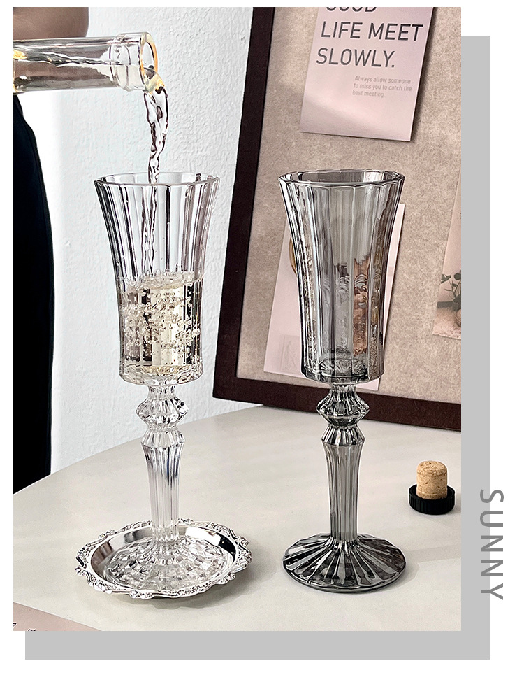 フレンチ中古高级感カラーシャンパングラスins宫廷风ストライプグラスワイングラスワイングラス