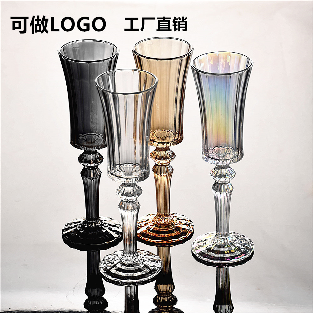 法式中古高级感彩色香槟杯ins宫廷风条纹玻璃杯红酒杯葡萄酒杯子