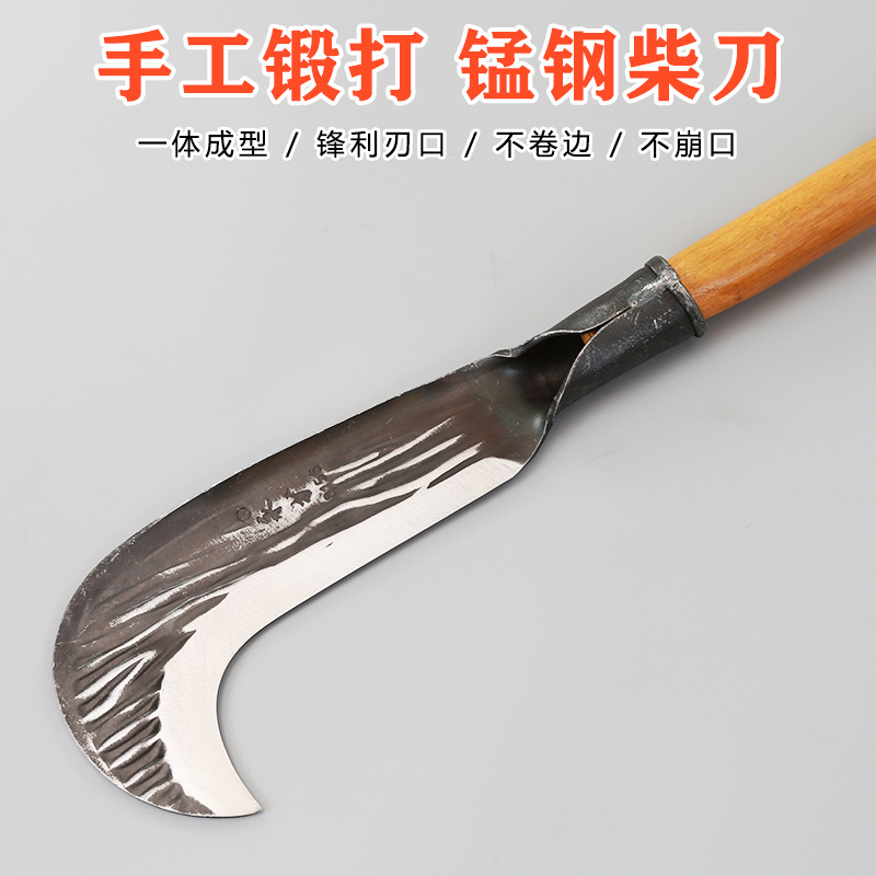 手工锻打砍柴刀镰刀农用刀具劈柴砍树开山刀锰钢锻打勾刀砍割两用