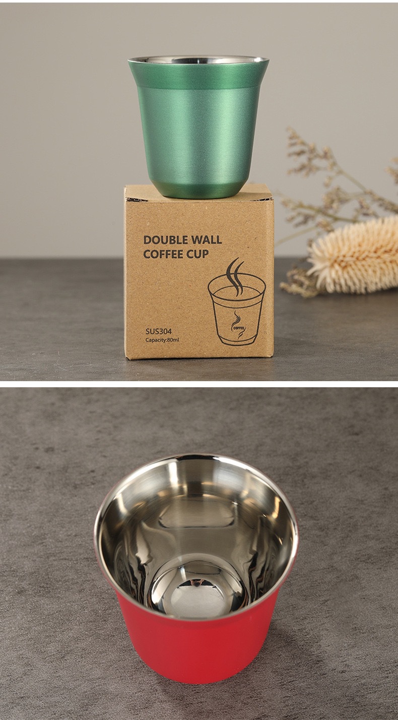 国境を越えた新型ミニコーヒーカップ80ml二重ステンレス304抗熱直飲カラーコーヒーカップ