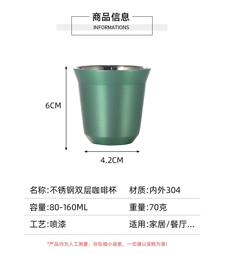 304不锈钢双层咖啡杯便携小容量迷你小酒杯家用隔热啤酒杯可定制