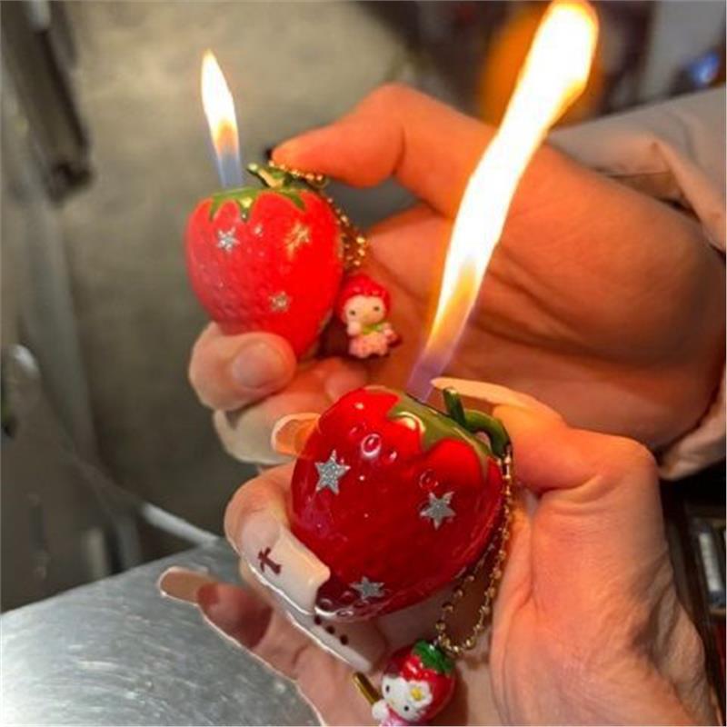 [ドロップシッピング] オリジナルイチゴライター、見栄えが良く、かわいくてクリエイティブなメタルインフレータブルライターキティ