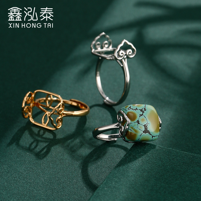中国風祥雲指輪空托男女小衆デザインモザイク翡翠和田玉復古シンプルリング空托