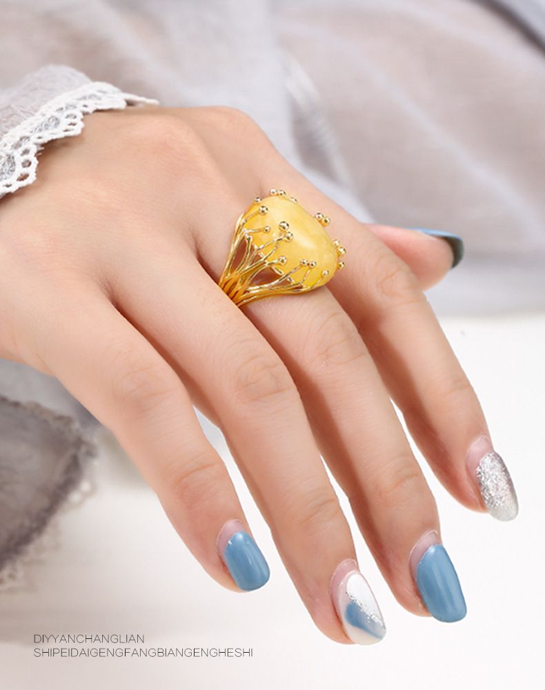 随形指輪空托部品18k金戒托空托diyはめ込み蜜蝋アンバー