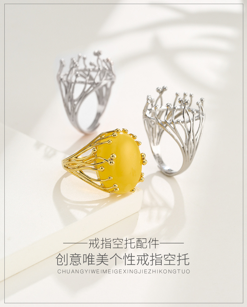 古法沙金工芸指輪空托女モザイク蜜ろう琥珀玉戒托空托シンプル楕円形空托
