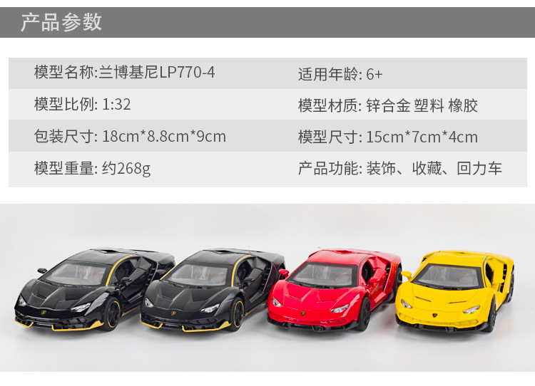 天鷹合金車モデル1対32蘭博lp 770スポーツカーの音光回力玩具車音楽モデルの置物コレクション