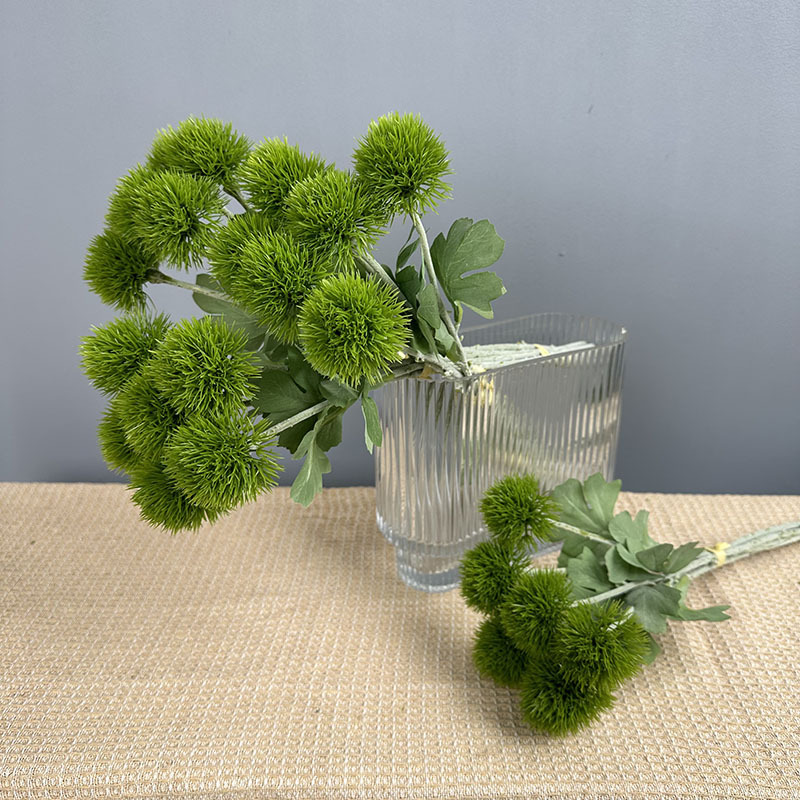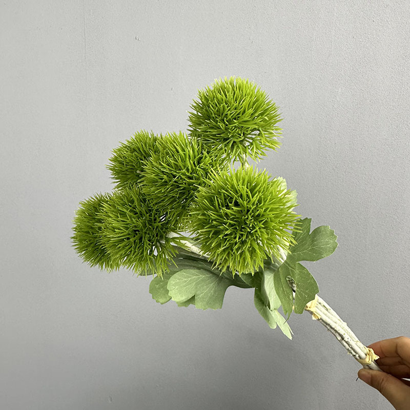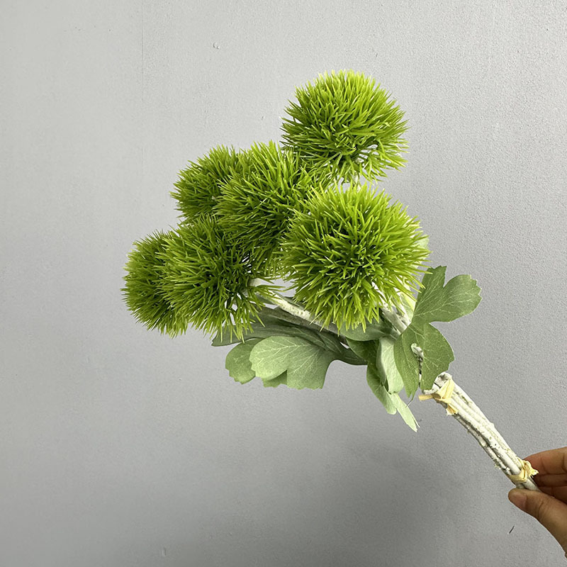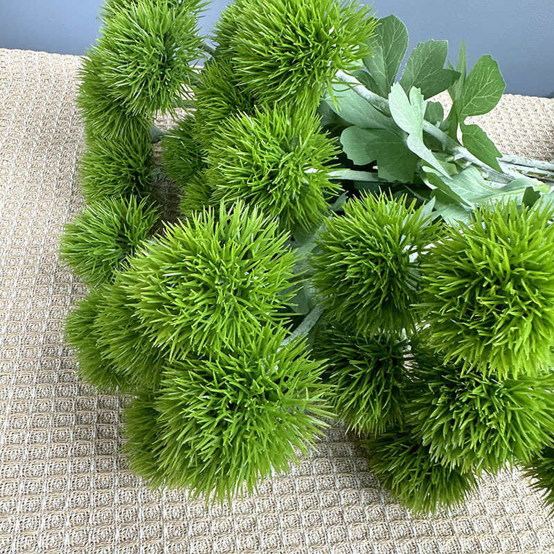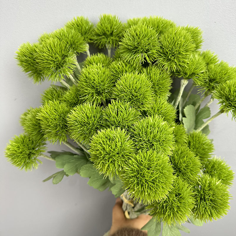 緑の石竹の家庭のデパートのサンプルの間の偽の花の生け花の陳列の手触りの柔らかいゴムの緑の毛のボールの手触りの石竹をシミュレーションします。