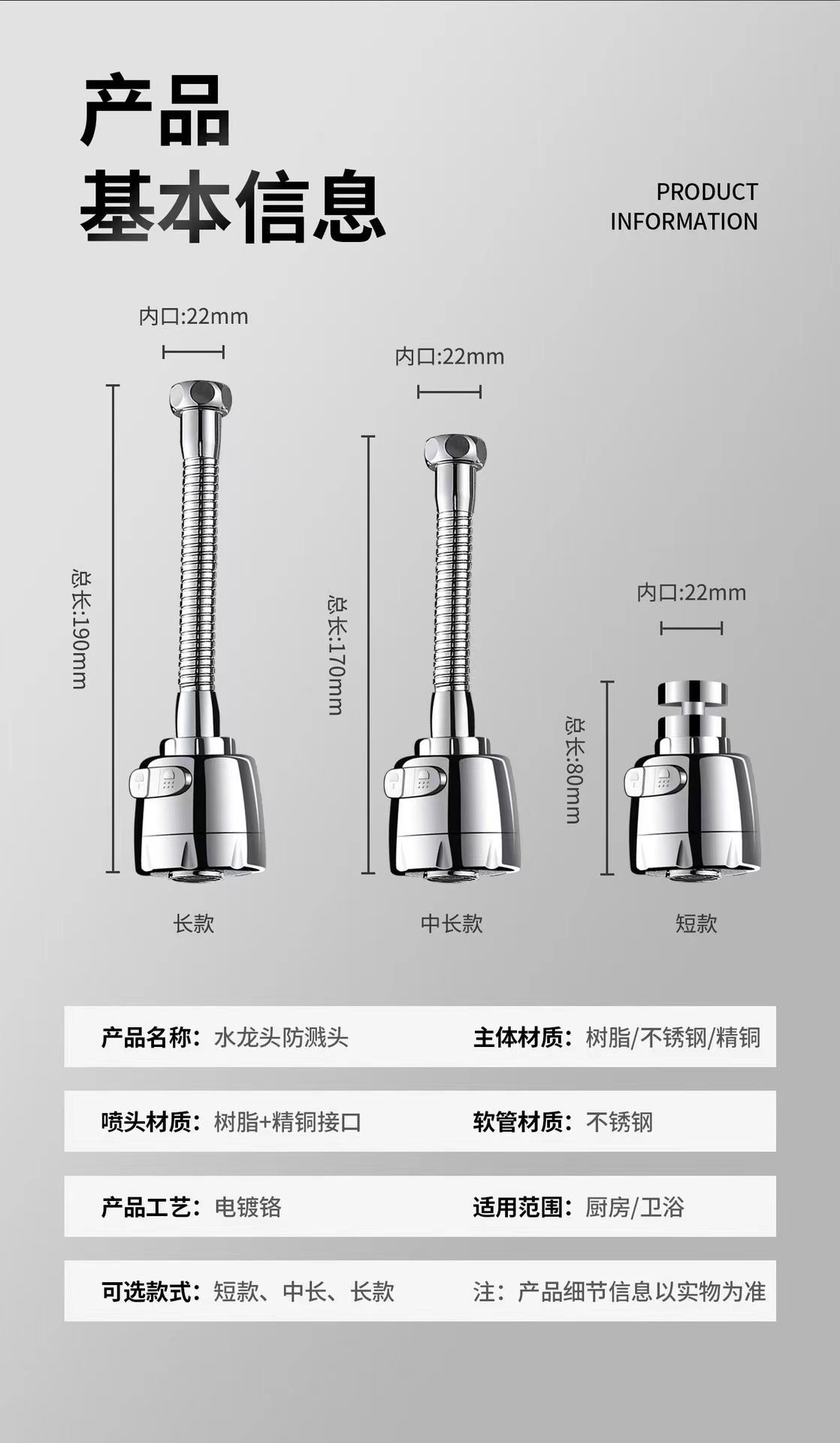 フィルターシャワーヘッド、加圧水栓、エアレーター、延長パイプ、キッチン家庭用万能防滴スプレーヘッド