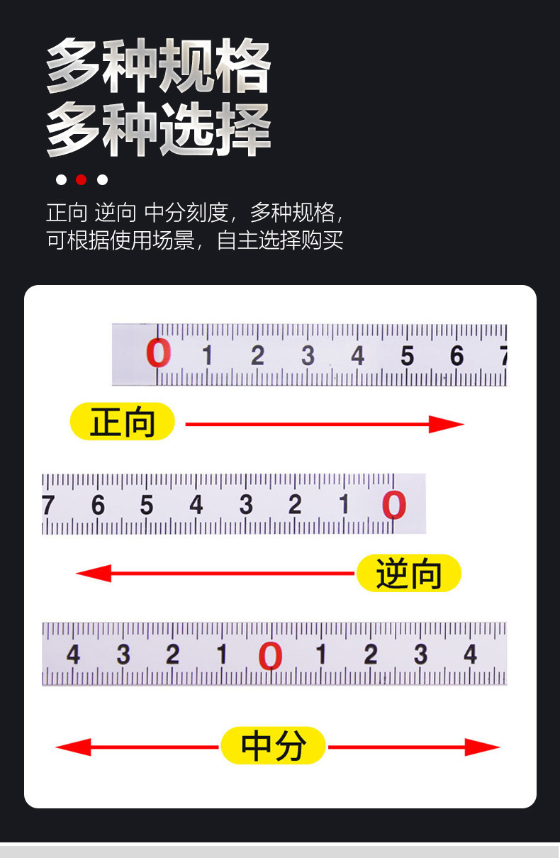 粘性尺可粘贴标尺刻度尺条贴带胶贴纸不锈钢金属中分台剧自粘尺子