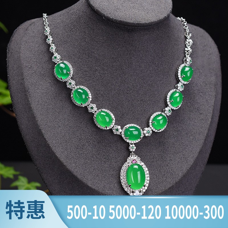 翡翠色项链时尚百搭阳绿玉髓锁骨链镶嵌首饰冰翡翠绿玛瑙玉石项链
