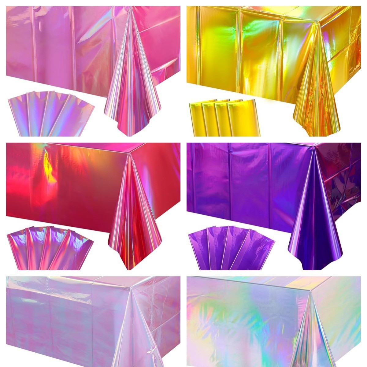 アマゾン使い捨て幻彩テーブルクロスレーザーテーブルクロスプラスチック虹テーブルクロスクリスマス誕生日パーティー