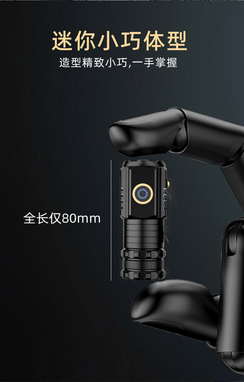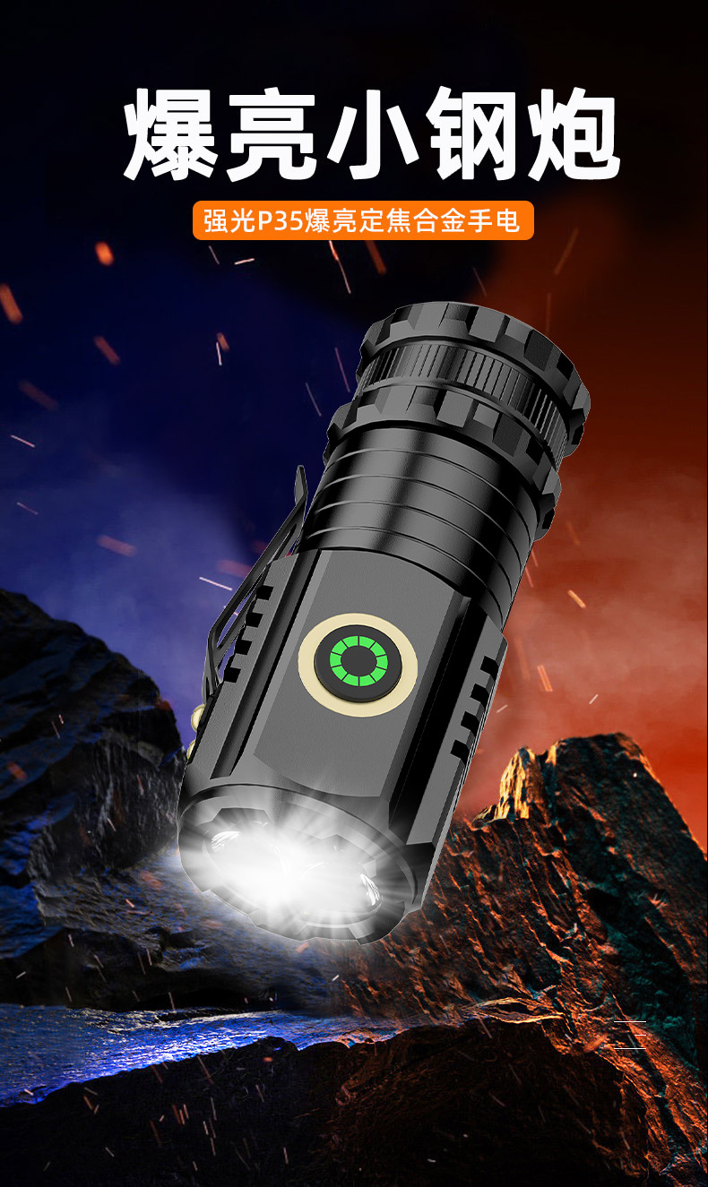 多功能远射手电筒迷你便携LED小手电户外多用途夹帽灯充电式