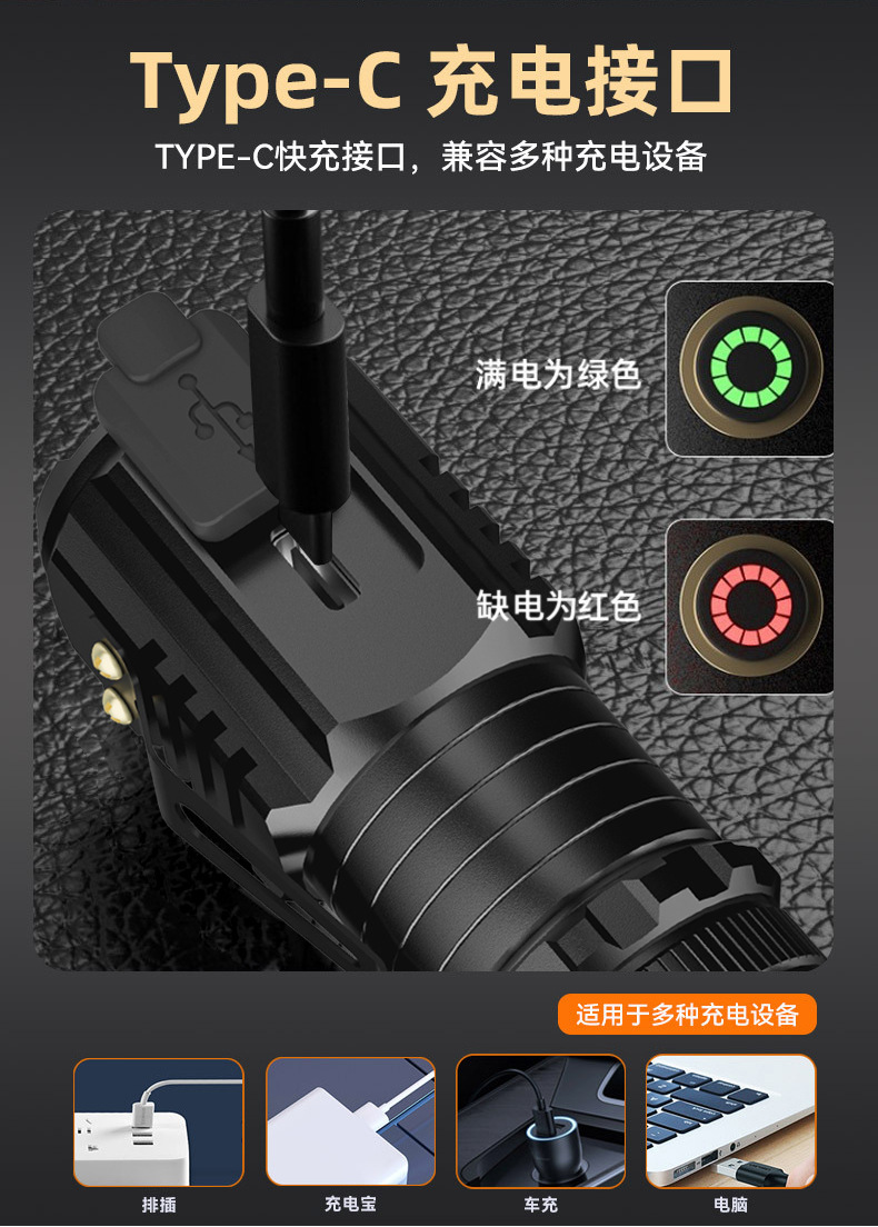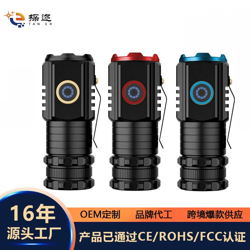 屋外ミニ懐中電灯強光レーザー砲三眼多機能充電携帯長航続磁気吸引懐中電灯