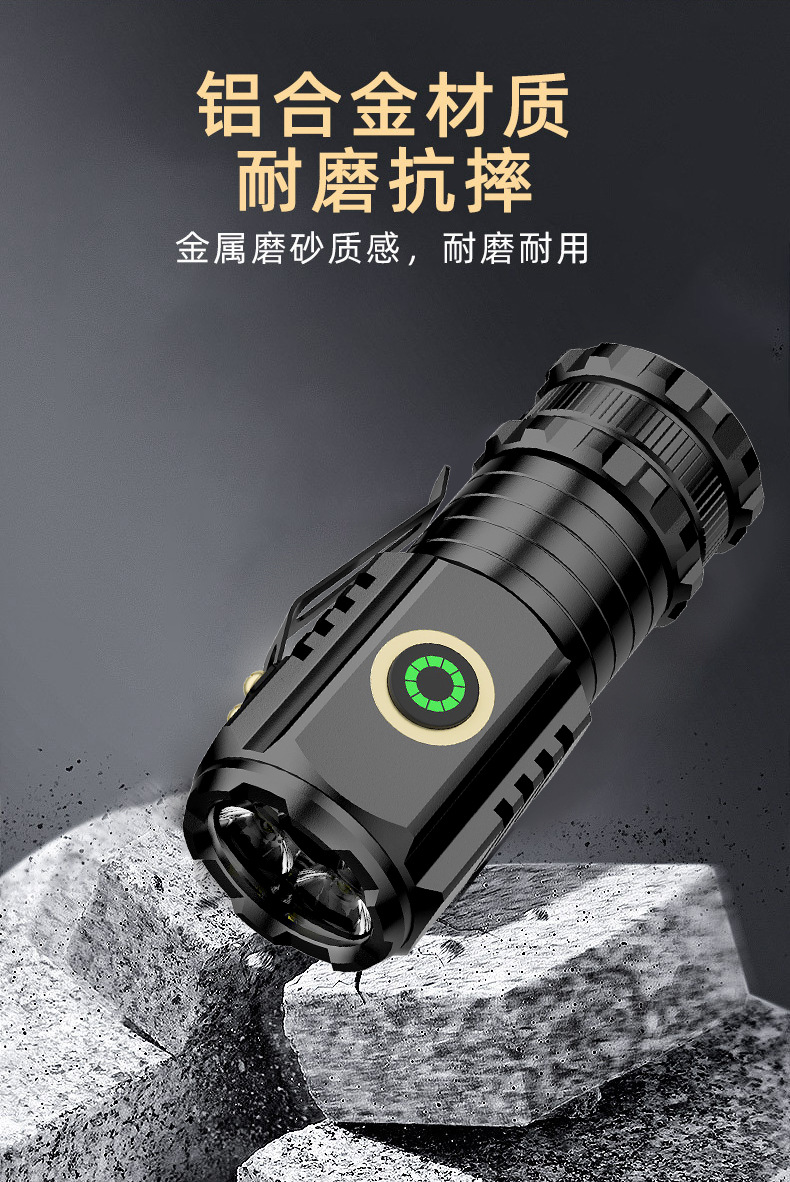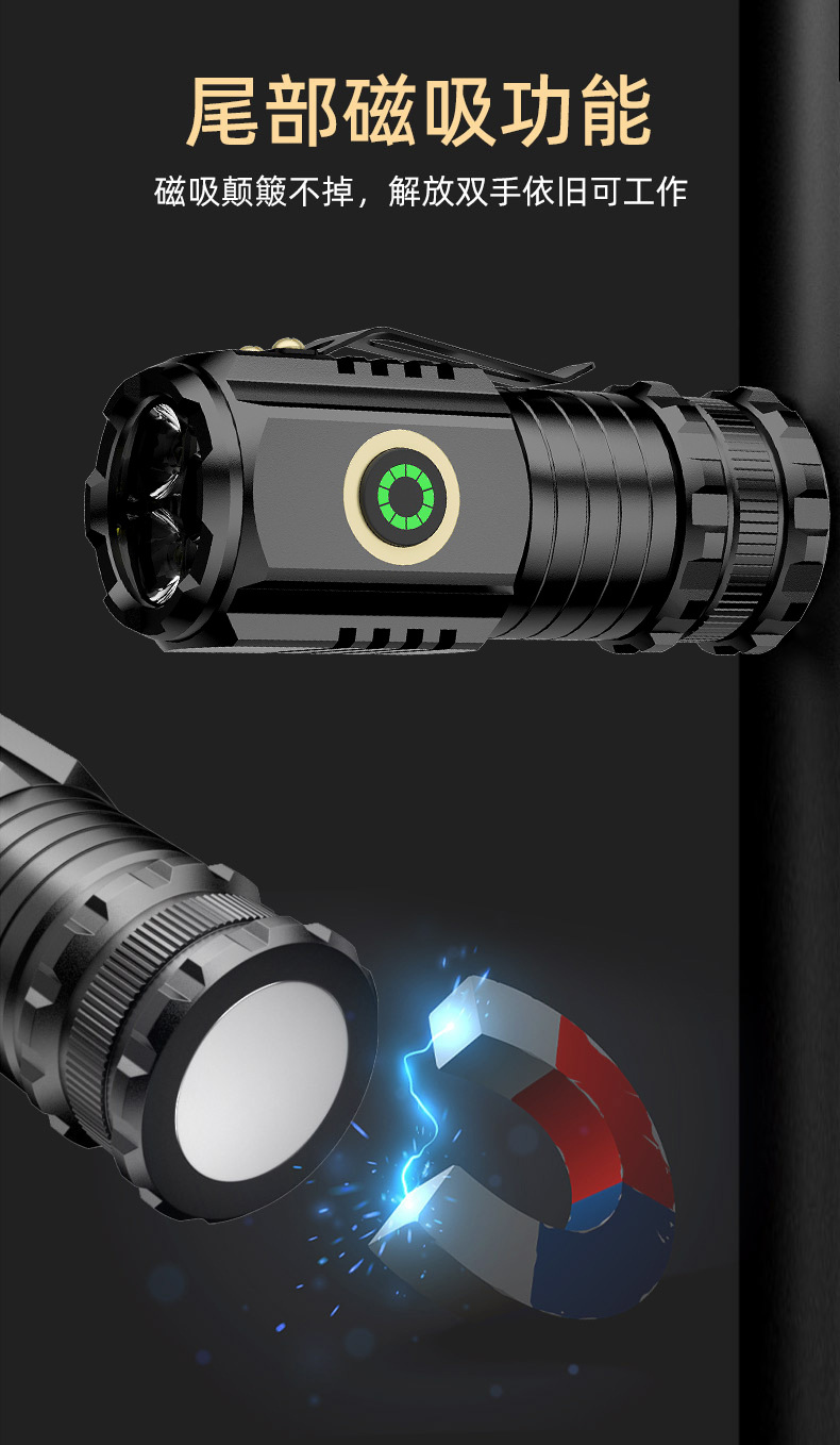 新しい強力な光磁気懐中電灯アルミニウム合金ミニ携帯屋外多機能クリップキャップ充電3灯小懐中電灯