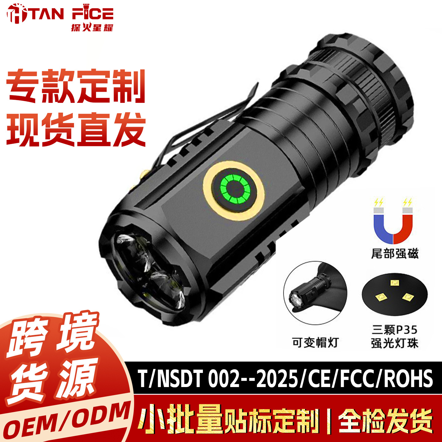 クロスボーダー新型三眼小怪獣懐中電灯強光超亮ミニフラッシュ強磁absペン付き懐中電灯