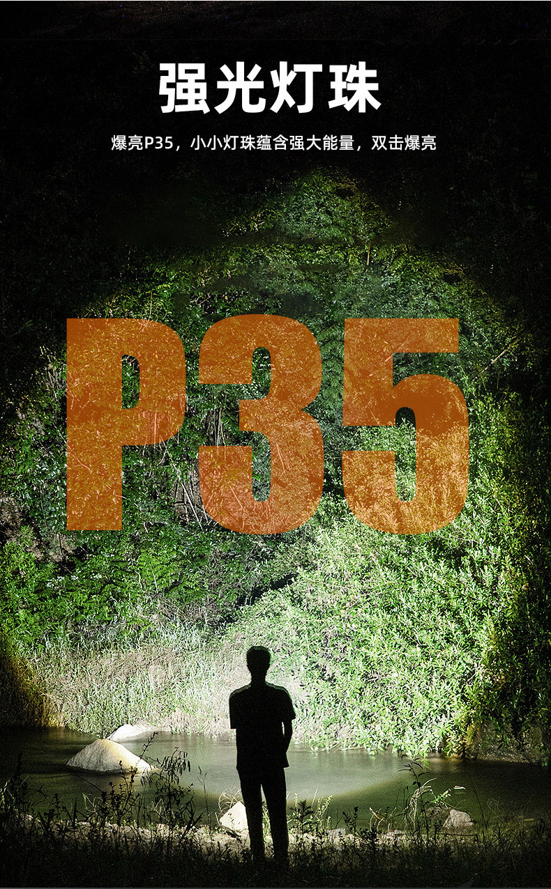 新型アルミ合金三眼怪獣強光懐中電灯小銀龍超亮家庭用屋外フラッシュ強磁気小懐中電灯