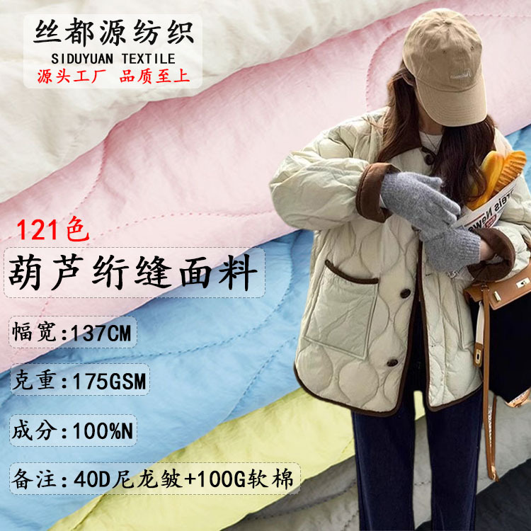 キルティング綿生地ナイロンしわひょうたん形有線キルティング刺繍秋冬保温綿生地120g綿