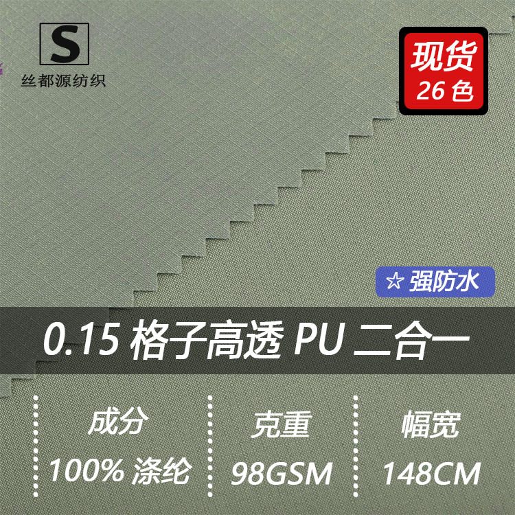 現物0.15ポリエステル格子高透貼りPU二合一戸外突撃服軟殻生地防水軽薄通気