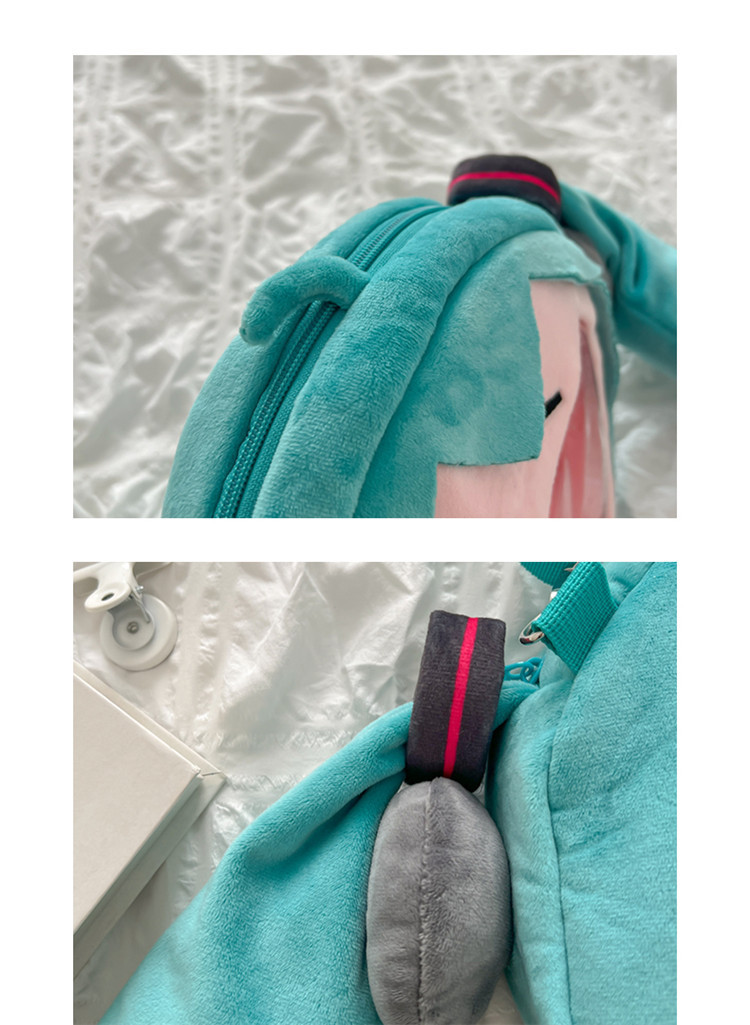 二次元のかわいい少女の痛みは初音ミクの大容量のぬいぐるみのぬいぐるみを包んで学生の柔らかい妹の斜め掛けのリュックサックを包みます。