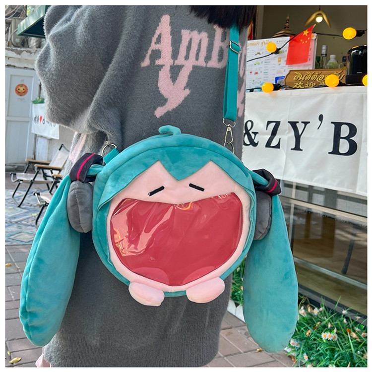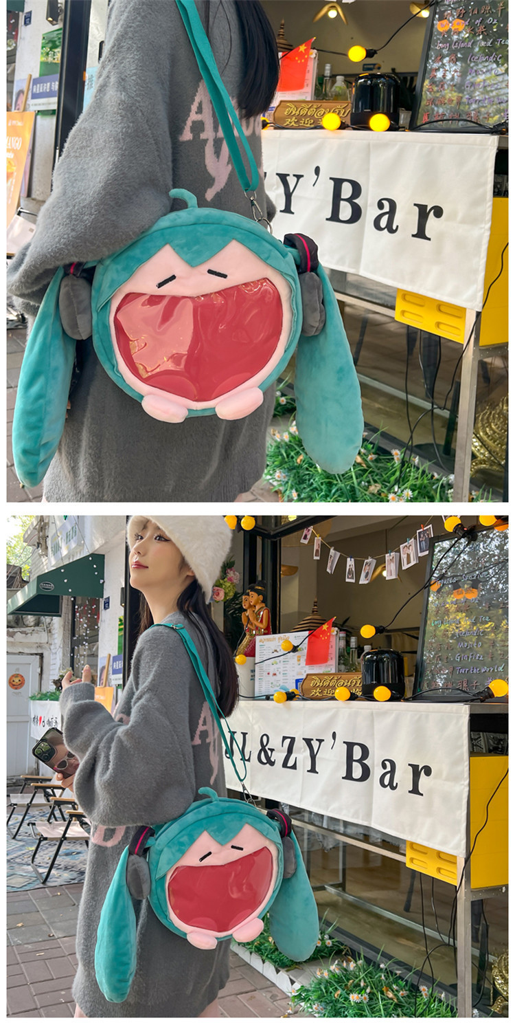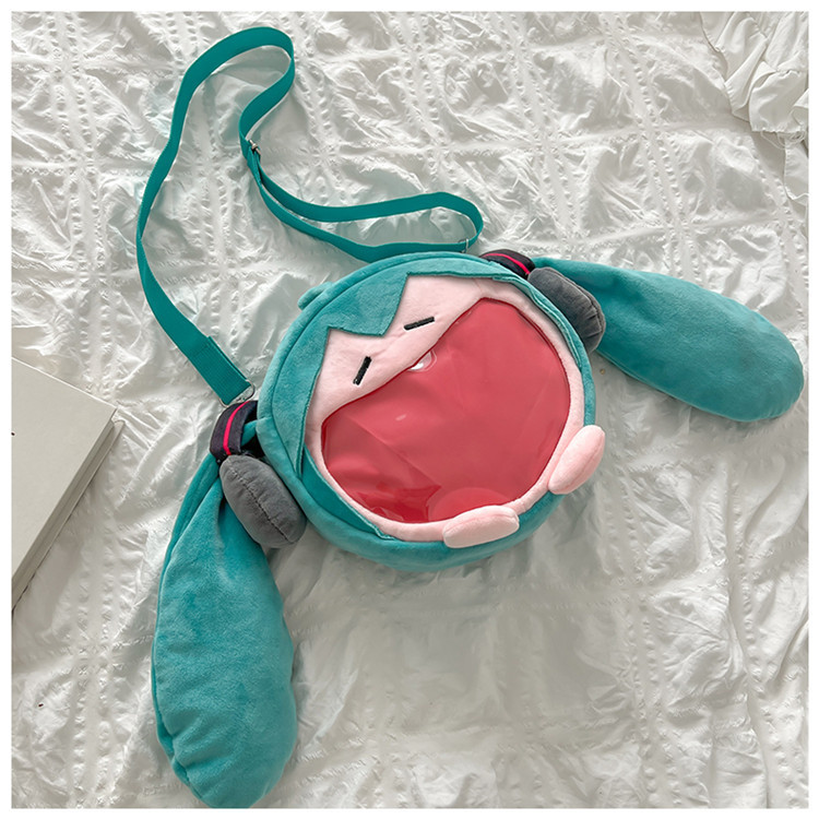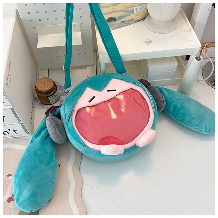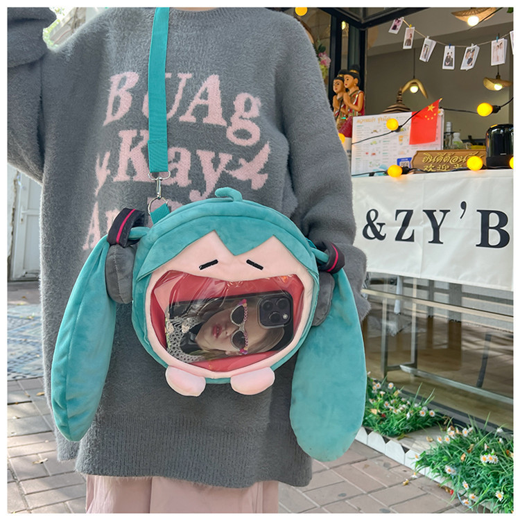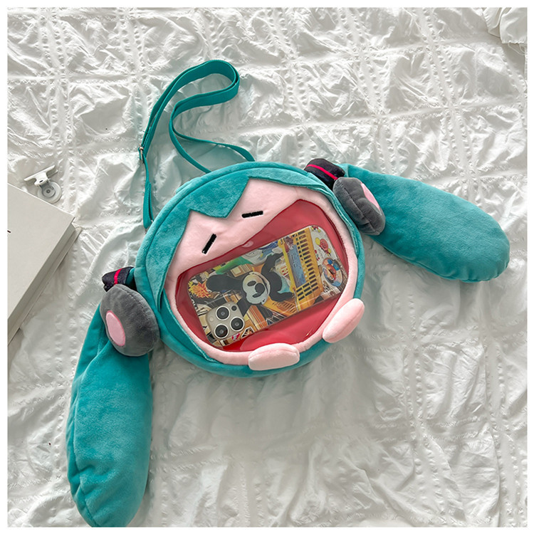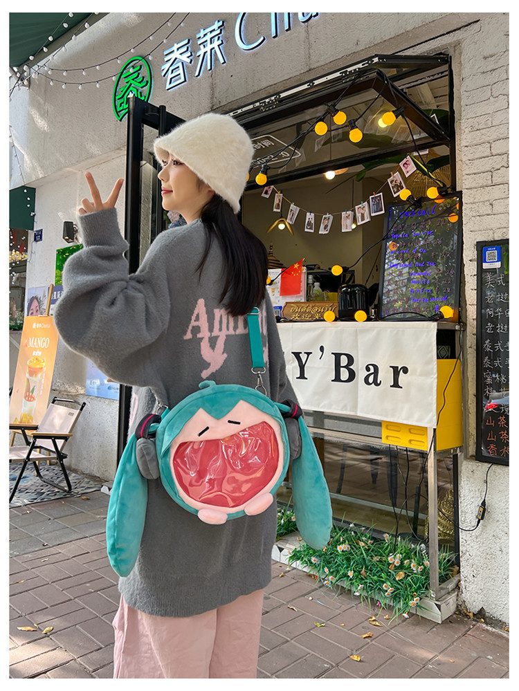 日系初音未来二次元可爱毛绒斜挎卡通玩偶背包学生包透明痛包系列