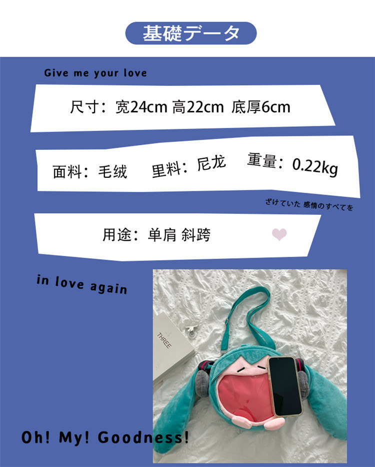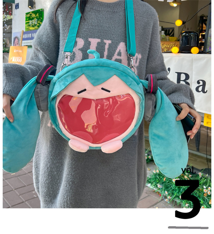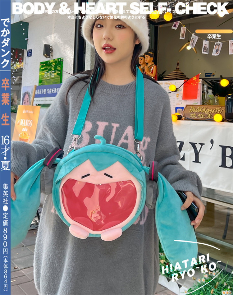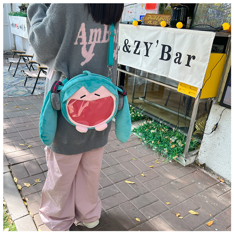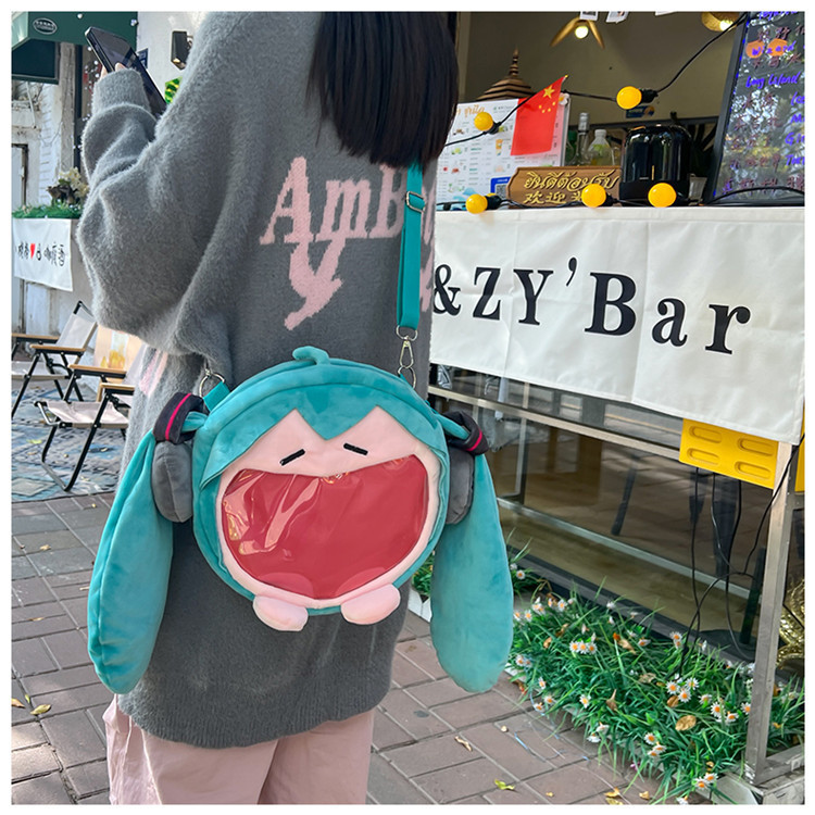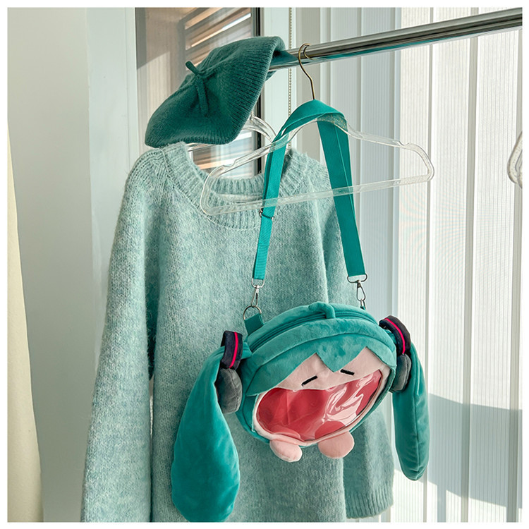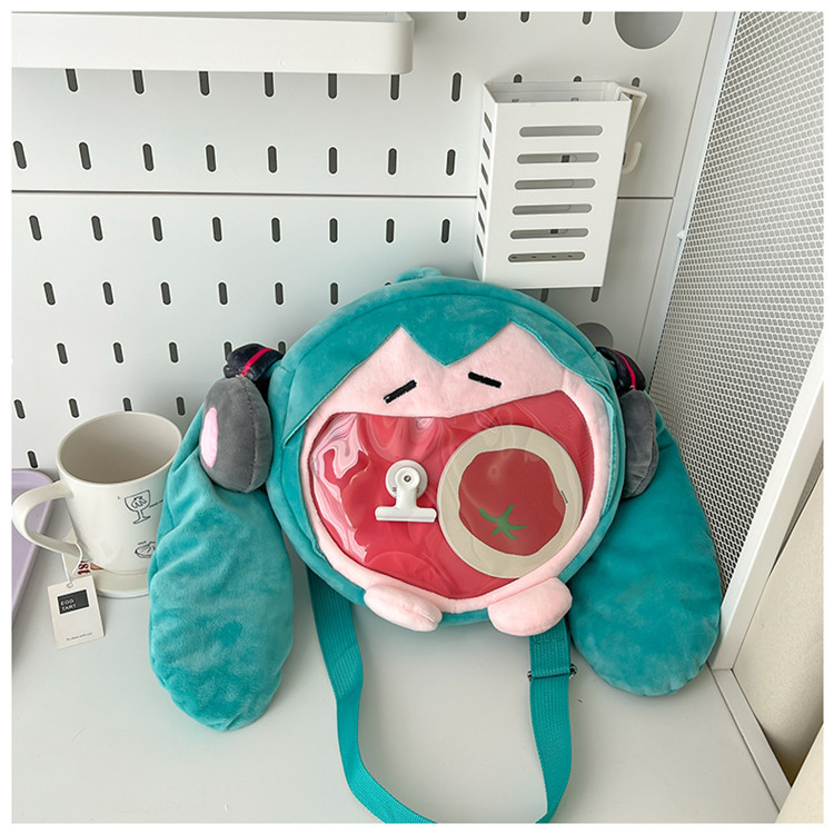 日系初音未来二次元可爱毛绒斜挎卡通玩偶背包学生包透明痛包系列
