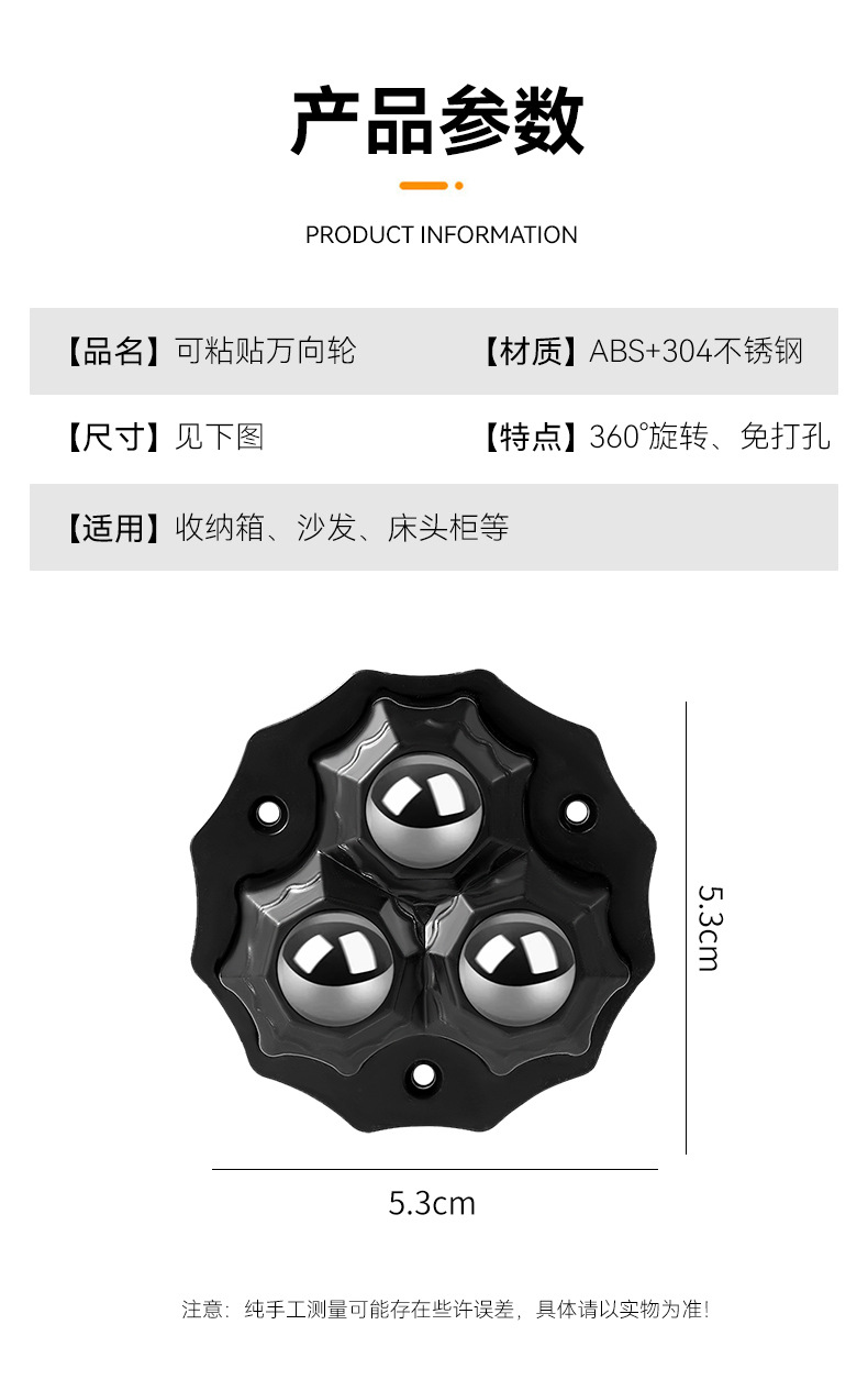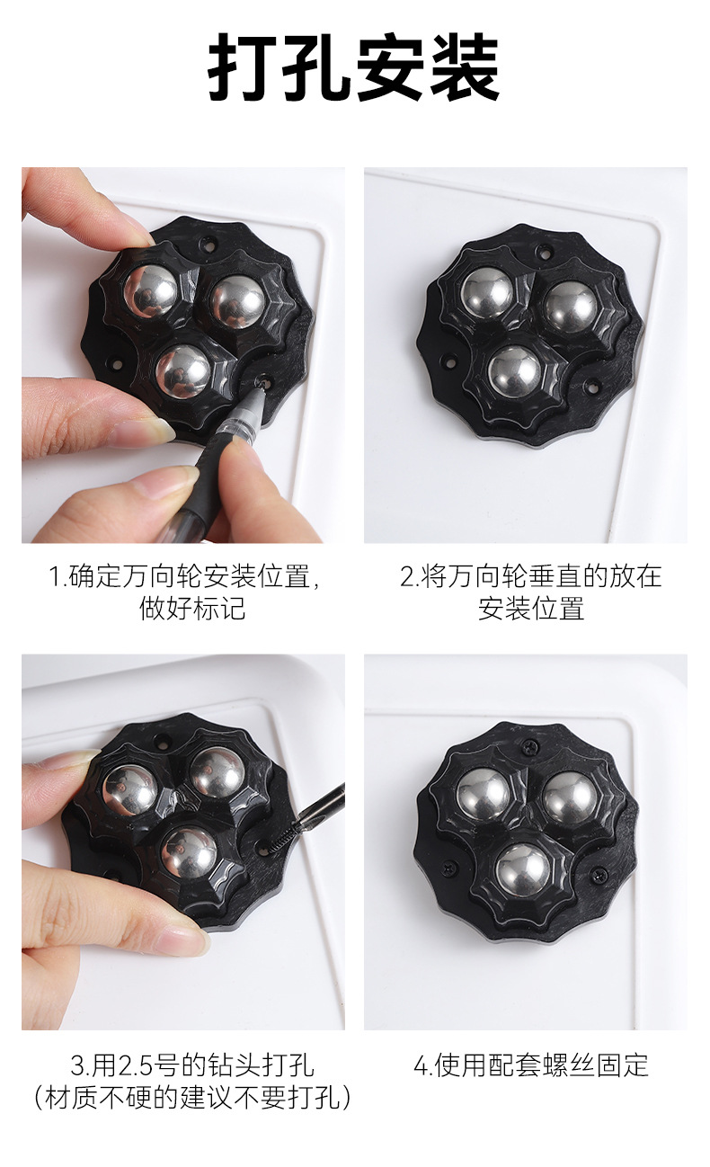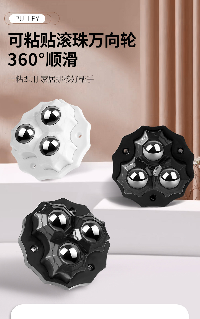 粘贴式滚珠滑轮万向轮静音可移动小轮子家用五金配件耐磨承重脚轮