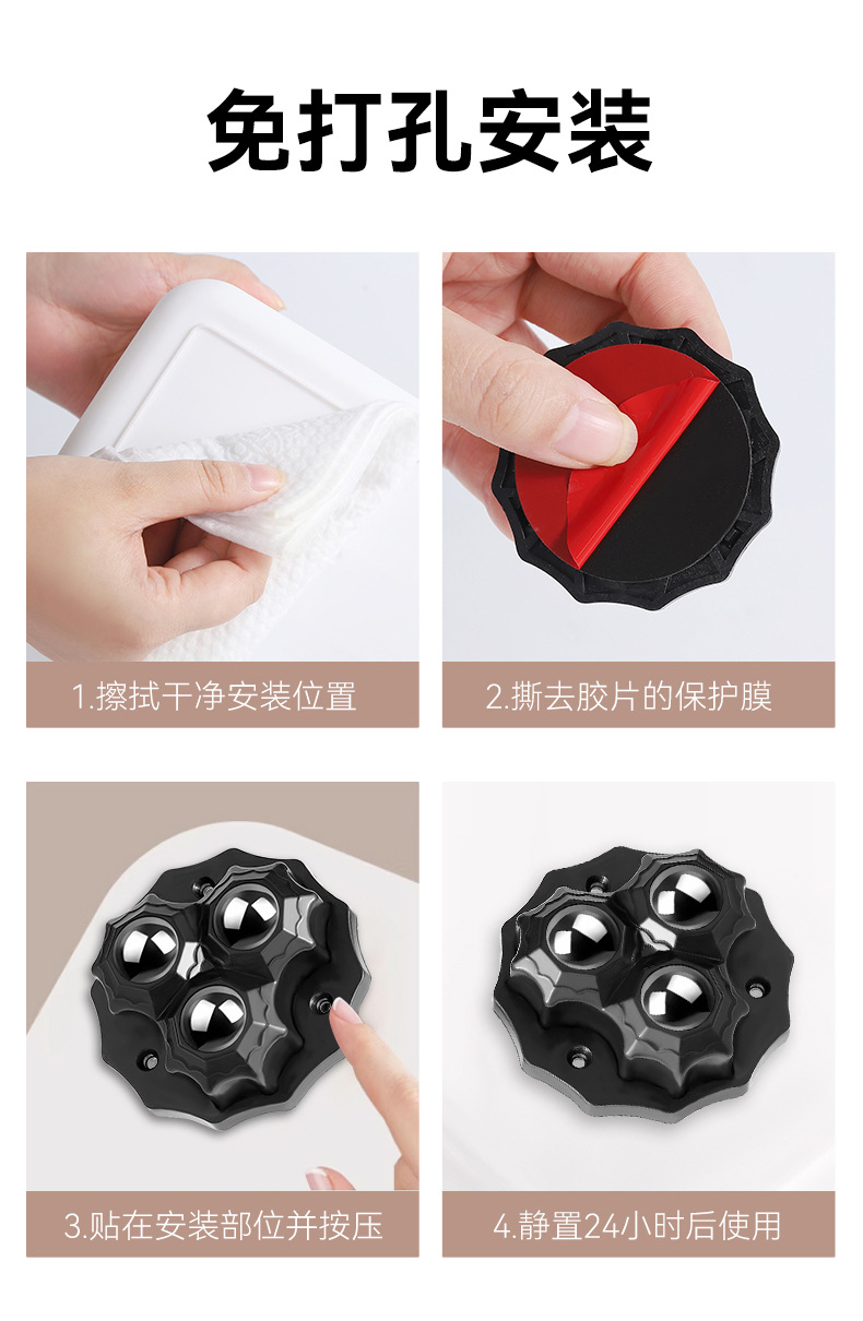 粘贴万向轮新款家居双滚珠免打孔耐磨承重静音家用五金配件小滑轮