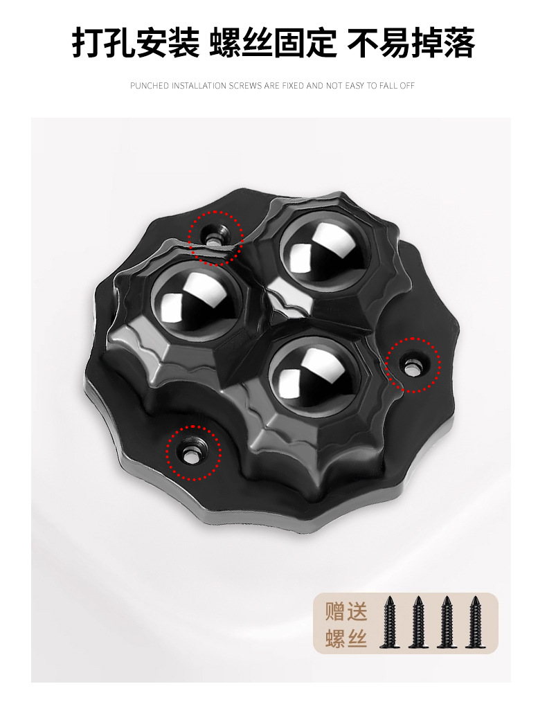 粘着式ボールキャスター、三珠五珠ローラー、スチールボール、移動式家具、耐荷重、静音、滑車、フットベースホイール