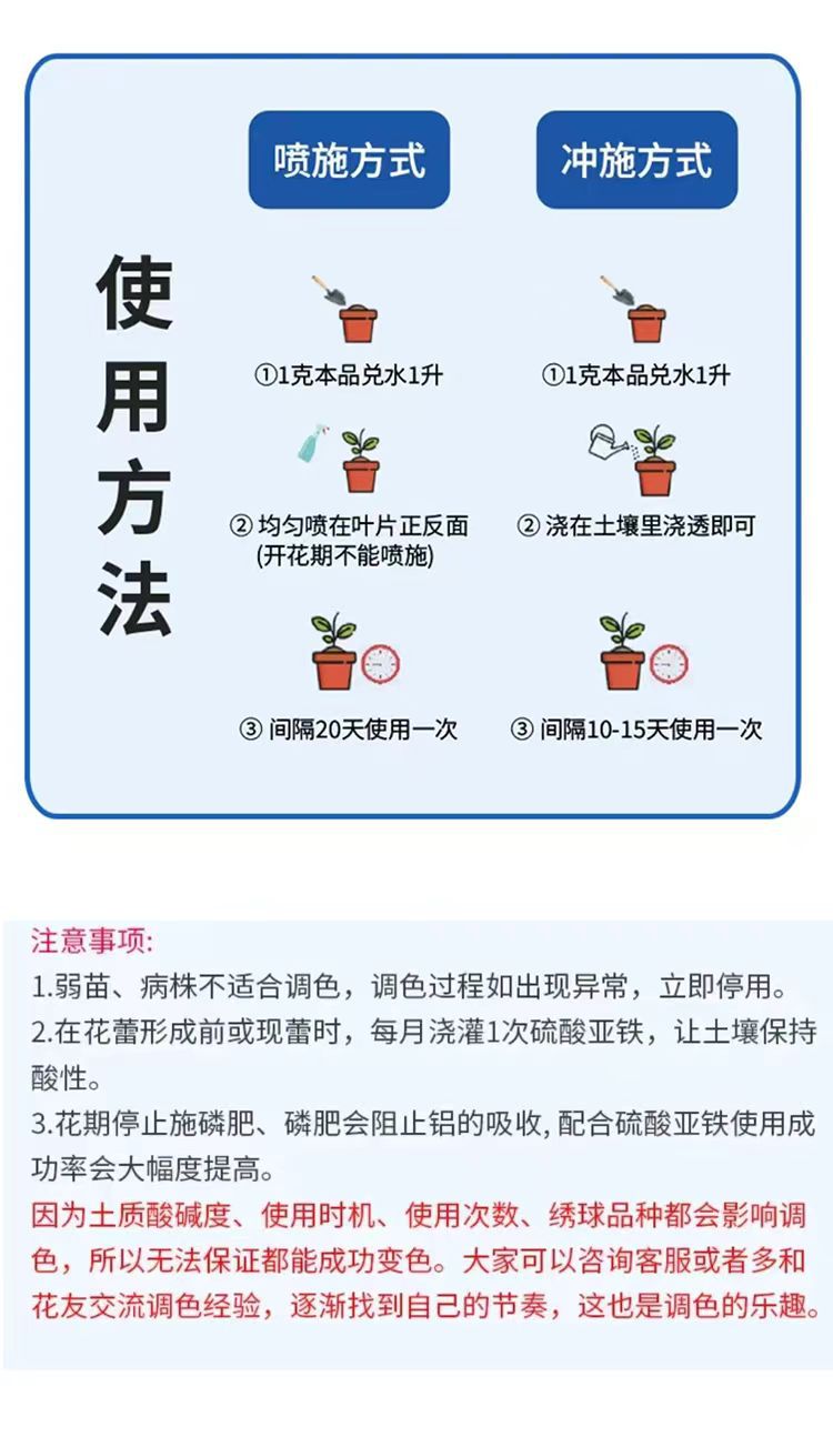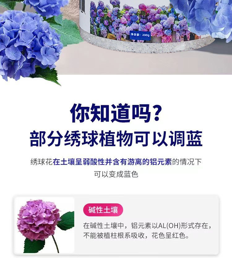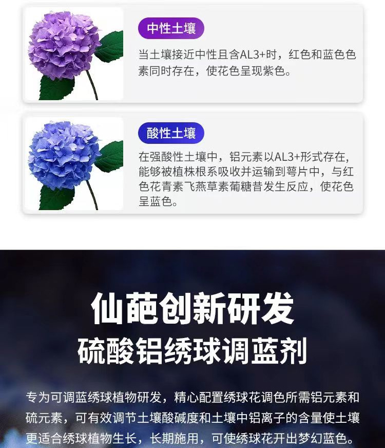 八老頭绣球用調色栄養肥料、硫酸アルミニウムブルーミング剤、変色肥料、花用長効性小粒、大輪花用