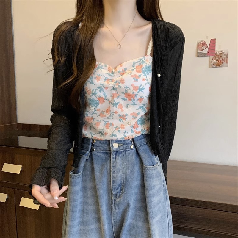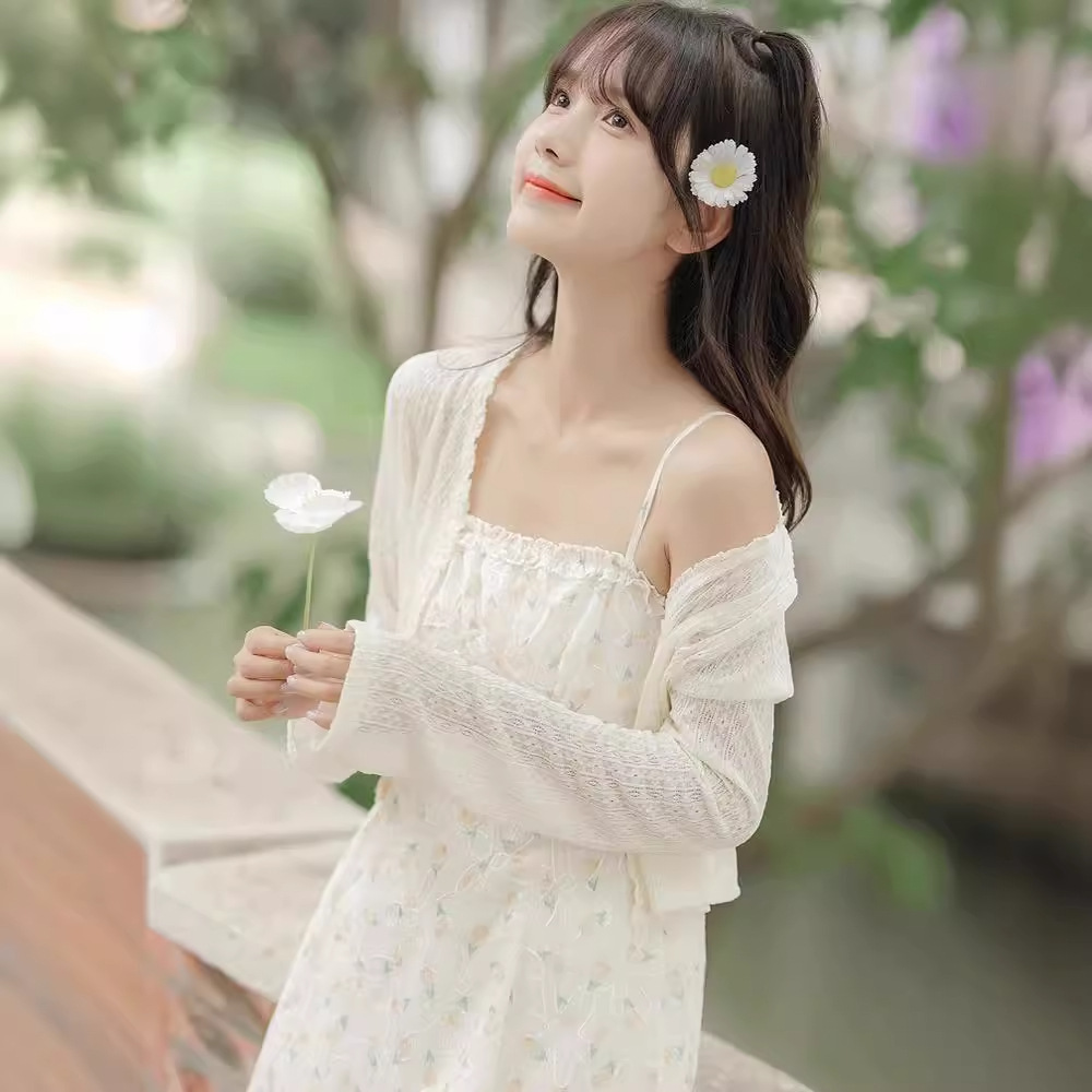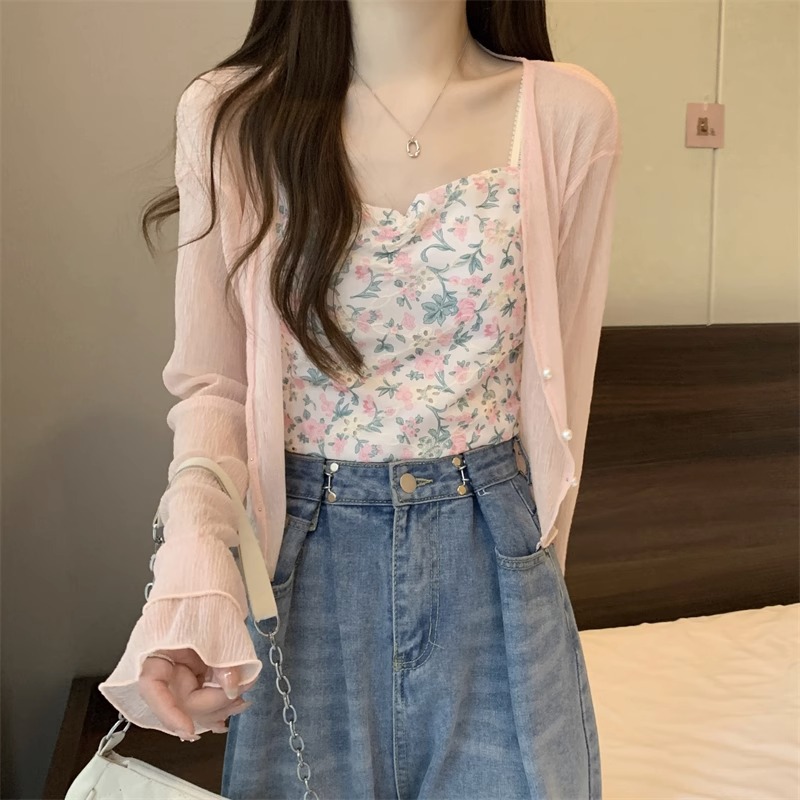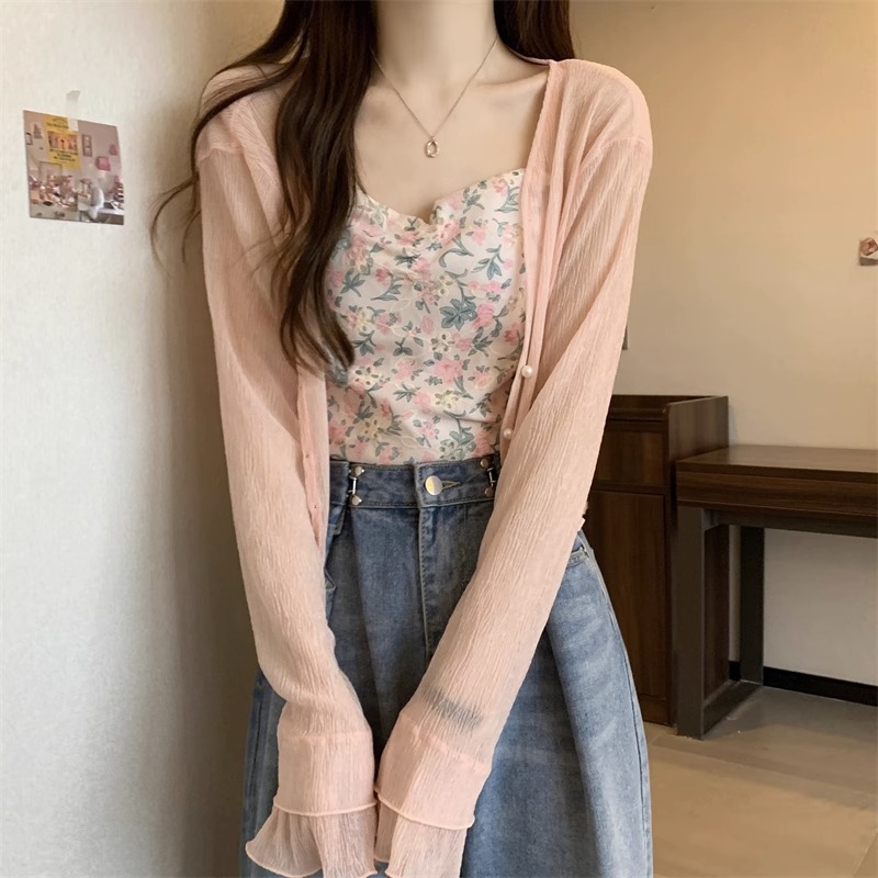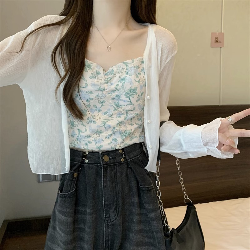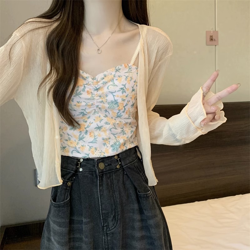 女性用フランス日焼け止めカーディガン、秋と夏のサスペンダースカート、ショールブラウス、小さなチョッキジャケット、気質