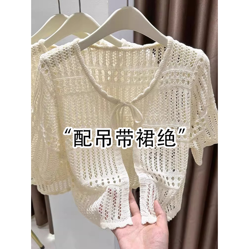 波西米亚风镂空短袖针织开衫女夏季配吊带裙外搭披肩短款防晒罩衫