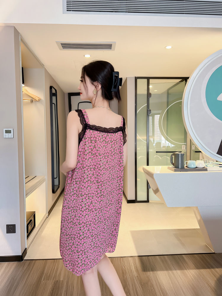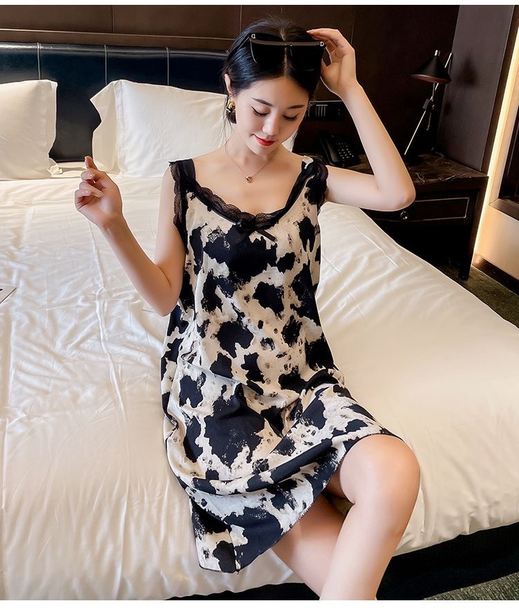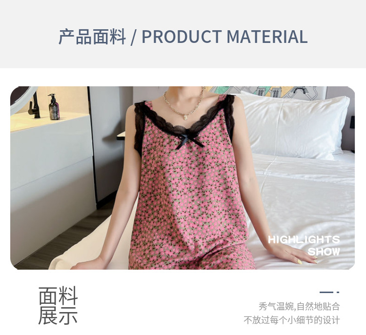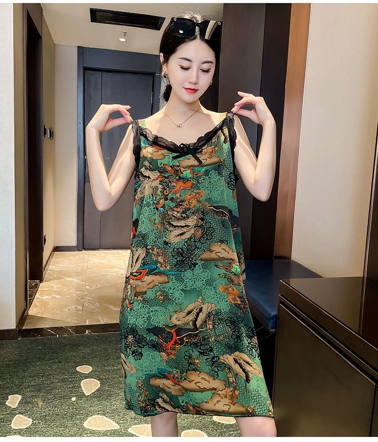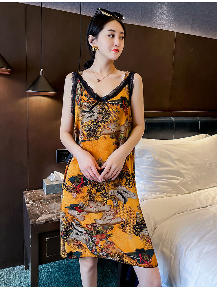 2025 最新 Fuxi Jiada アイスシルクサスペンダードレスセクシーなプリントレースアイスシルクマットスーツパジャマ