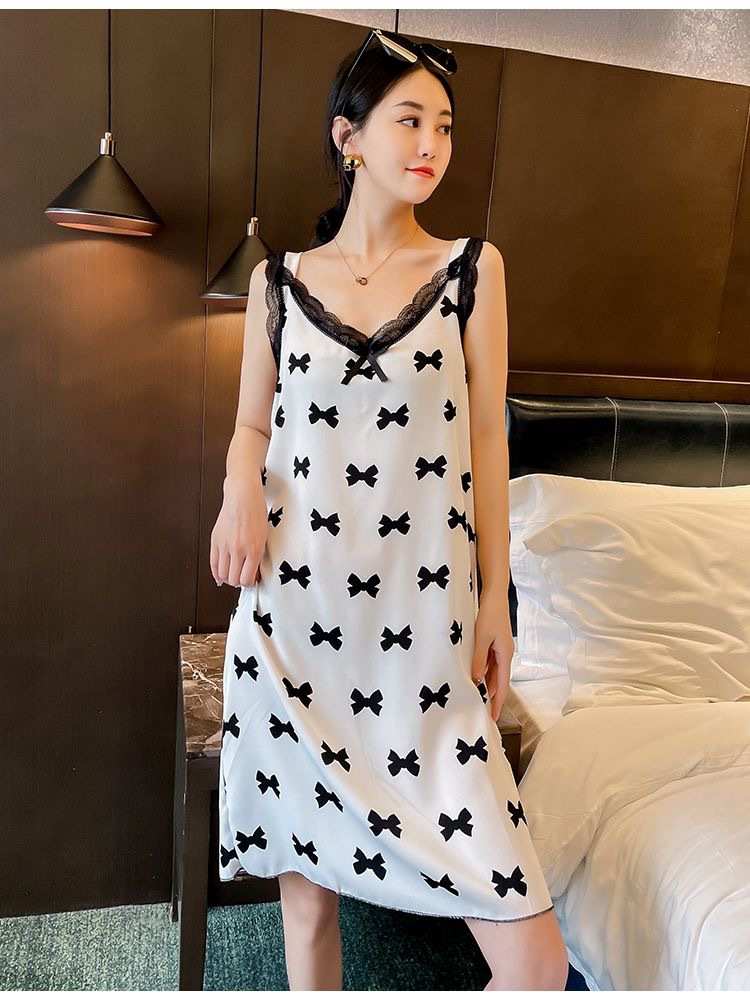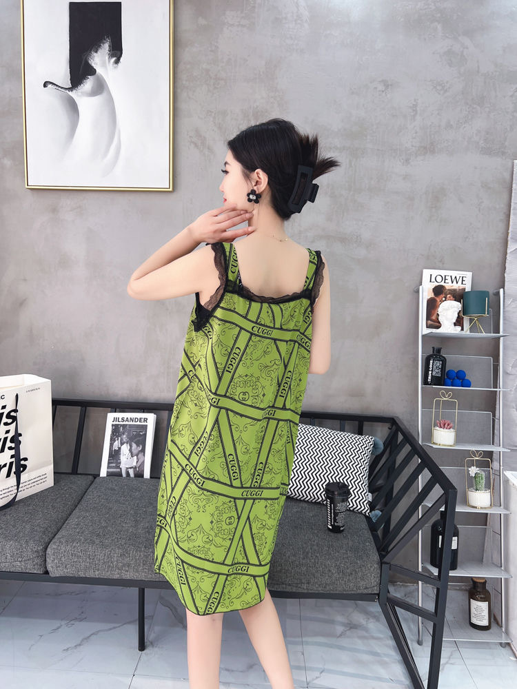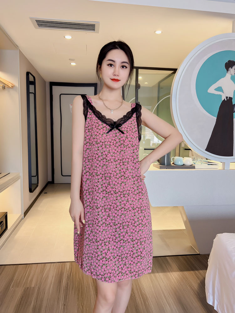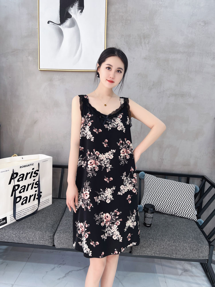 夏の新型のサスペンダーの寝スカートの女性の薄い種類のカンカンの袖の氷の冷たい韓国版のゆったりしている快適な家庭のワンピースの女性