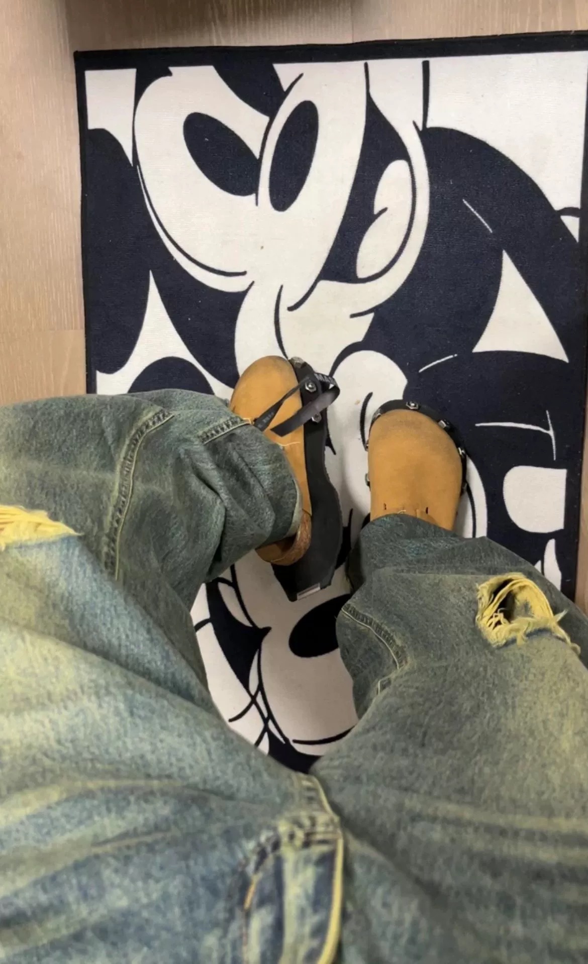 ビッグトゥシューズ厚底ダメージ加工ダーティデニムミッキーシューズ2025新しい醜いニッチカジュアルオールマッチキャンバスレディースシューズ