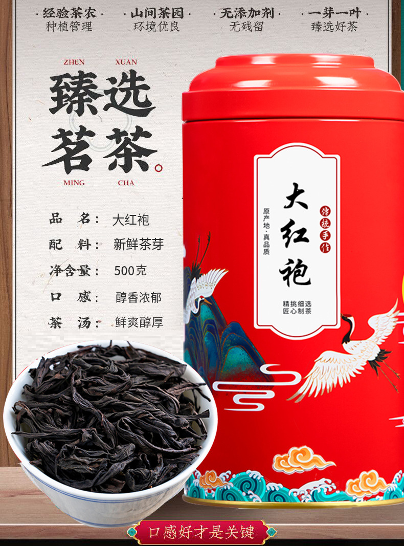 2023新茶大紅袍茶葉濃香型武夷山岩茶ウーロン茶シナモン散ばら積礼箱500g