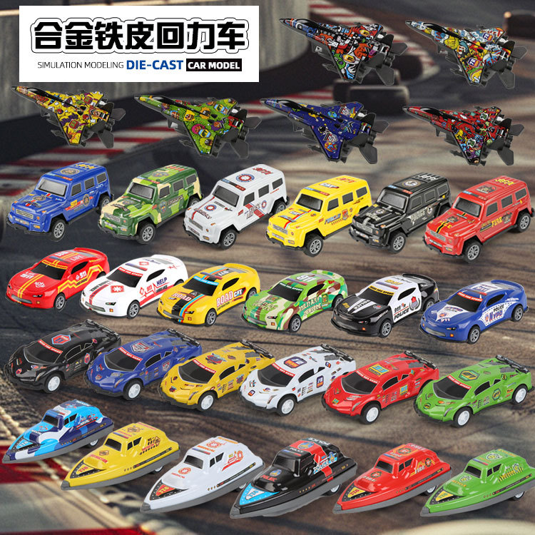 儿童玩具车 合金金属铁皮回力车模 男孩警车战斗机仿真飞机礼物品