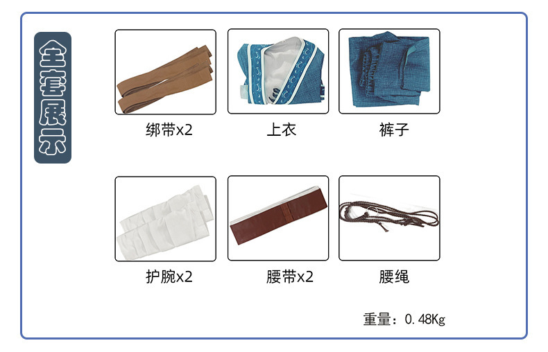 カラー 布米安昂真人 (上着 + ズボン + ベルト + ショール + ハンドベルト * 4 + 足保護),カタラ真人 (上着 + ズボン + ベルト * 2 + 腕保護 * 2 + ベルト * 2 + ウエストロープ)