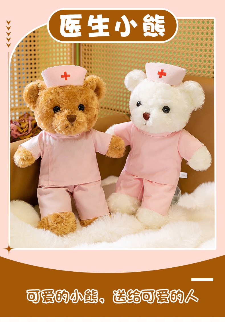 医生护士服泰迪熊公仔毛绒玩具护士制服熊可印logo小熊活动礼品