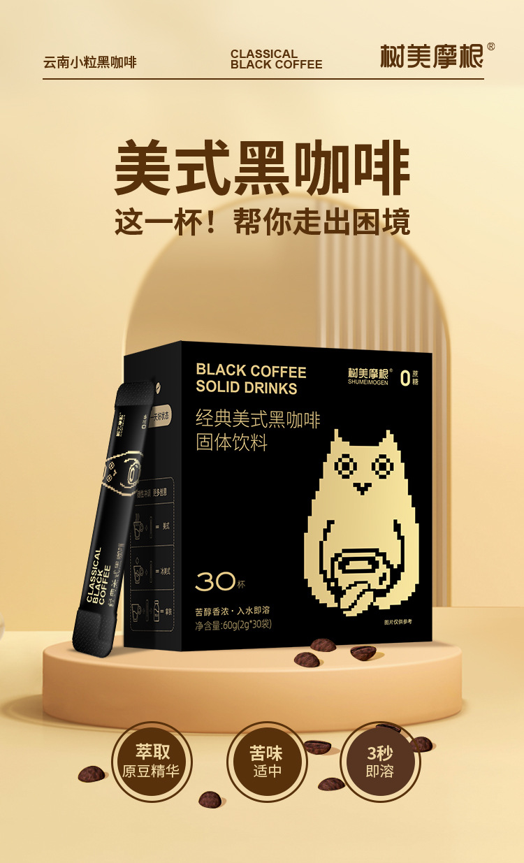 OEM アメリカン ブラック コーヒー インスタント コーヒー カスタマイズされた雲南コーヒー 0 糖脂肪満腹食事代替スポット卸売