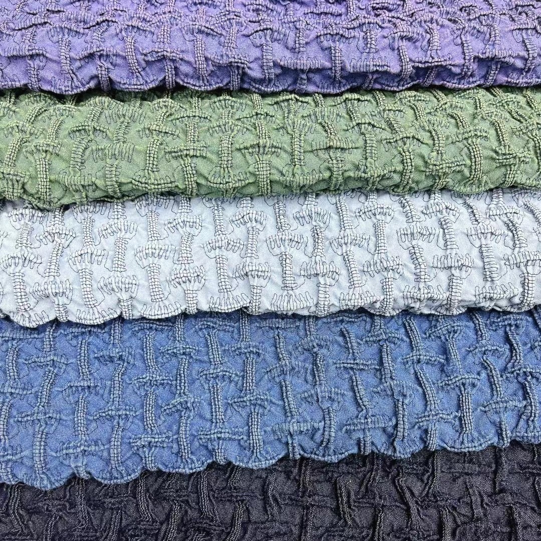 10*10秋冬モデル無弾ジャカードデニム10オンスブルー男女デニムコート生地現物供給