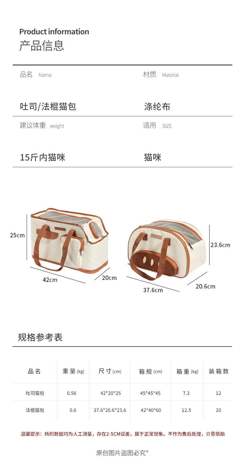 カラー フランス猫バッグ,トースト猫バッグ