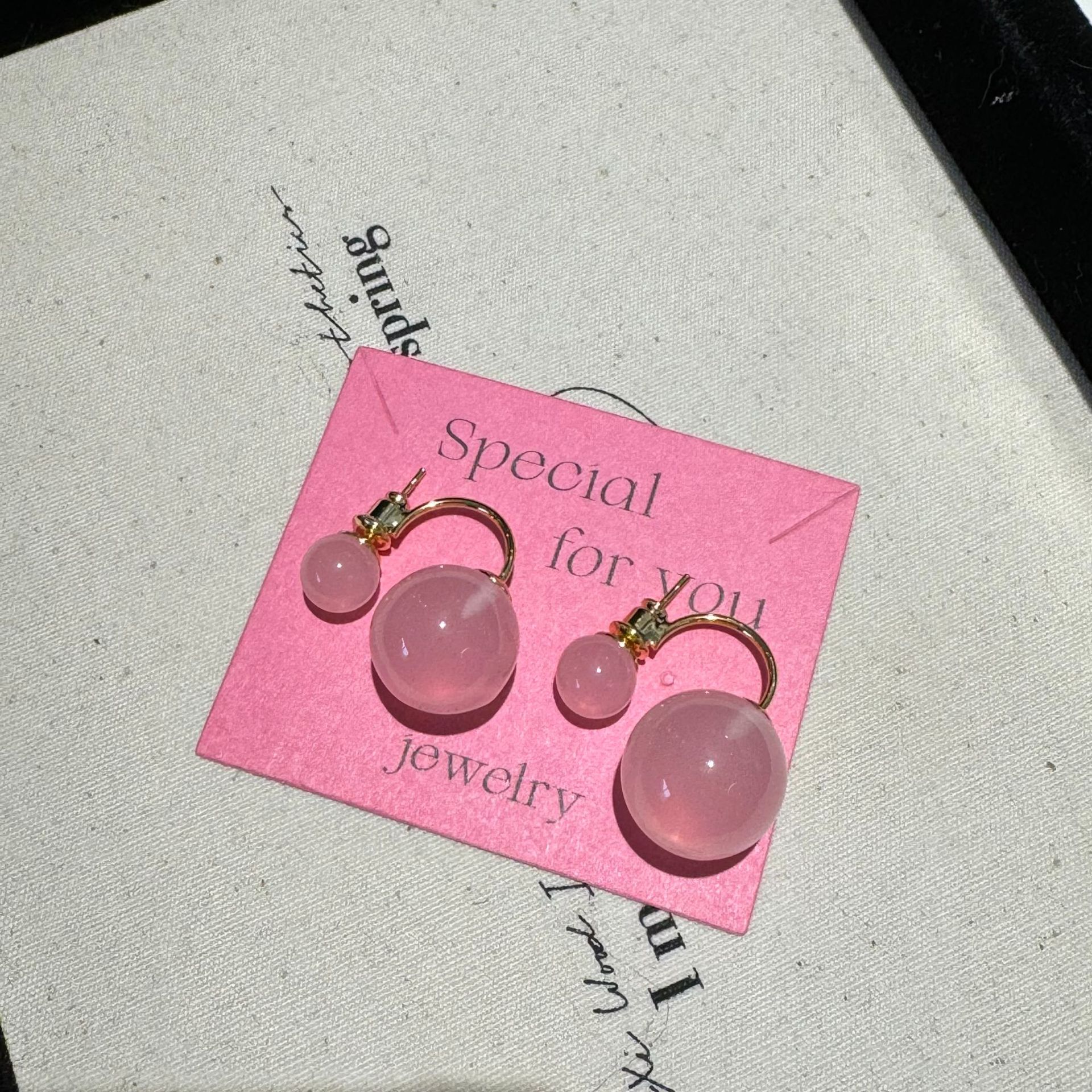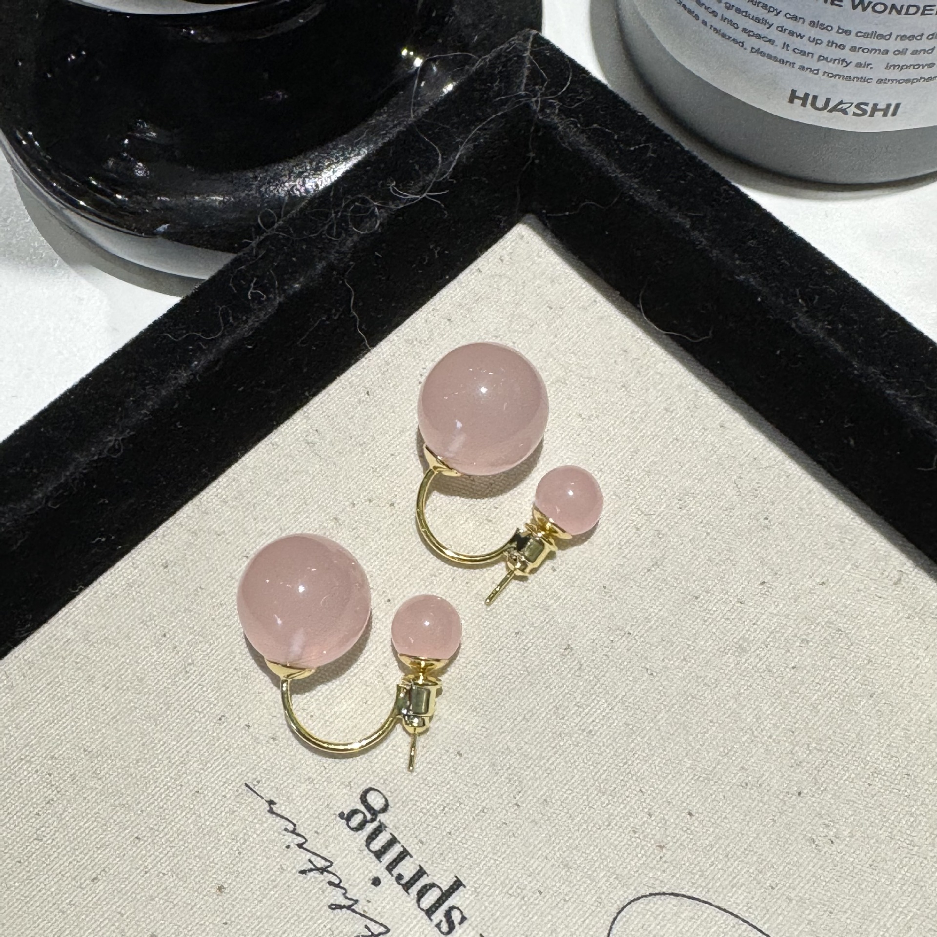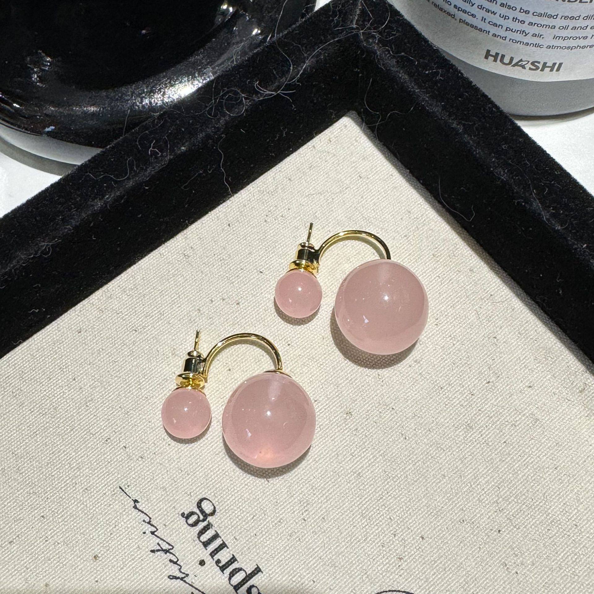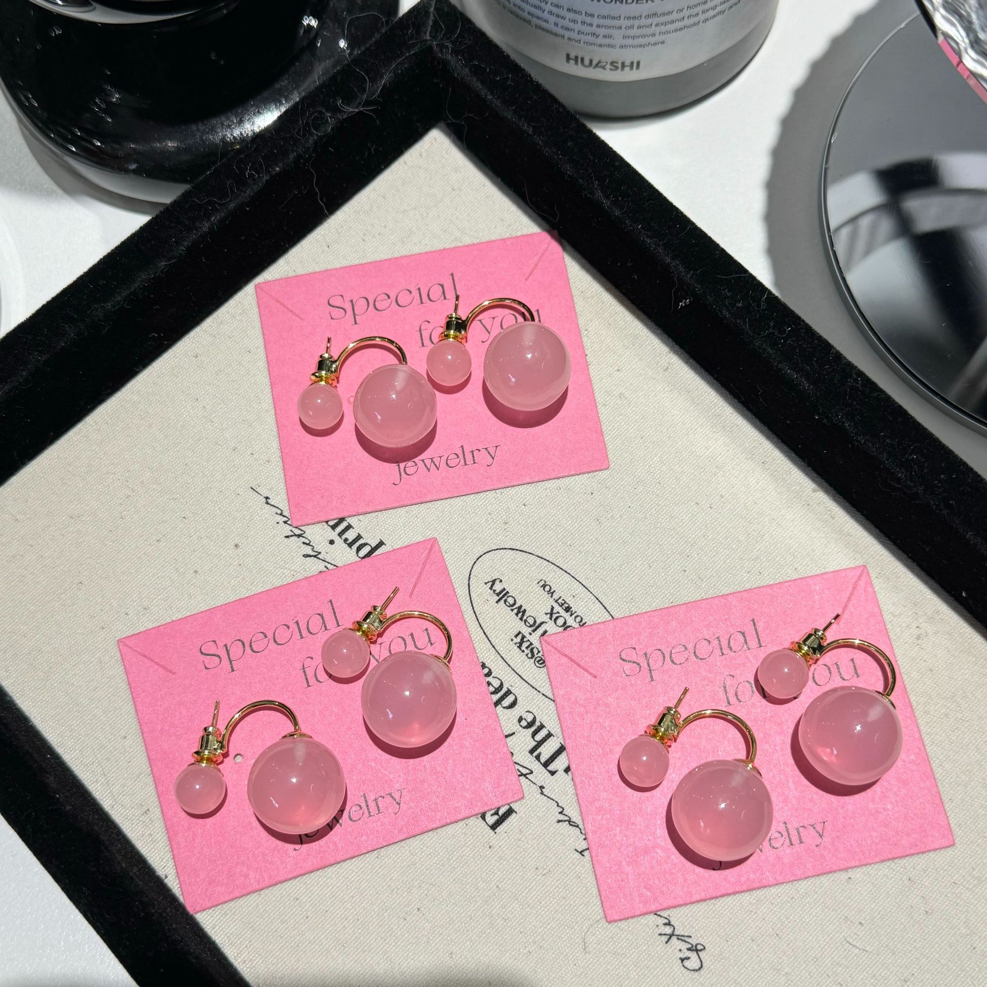かわいいピンクのビーズのイヤリングの前後にデザインs925銀針の女性の気質をつけて甘い気質をつけます。
