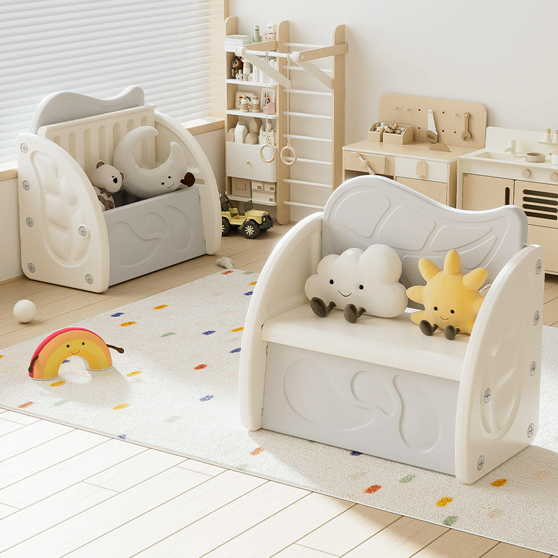 現代のシンプルなプラスチックの子供の収納の腰掛けの多機能の赤ちゃんのゲームのソファーの腰掛けの家庭用の組み合わせのおもちゃの収納箱
