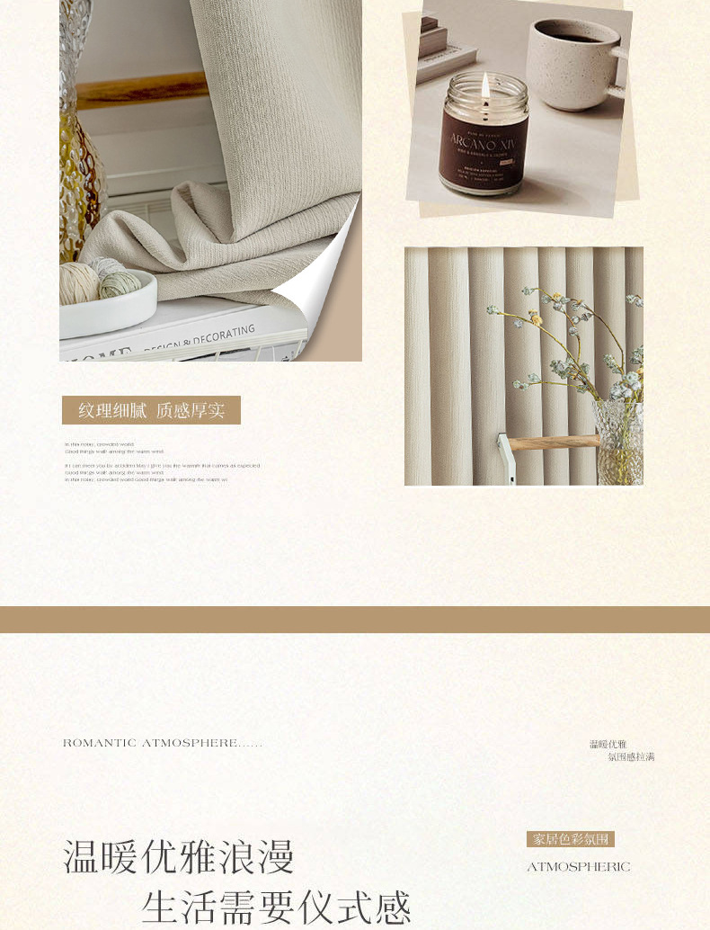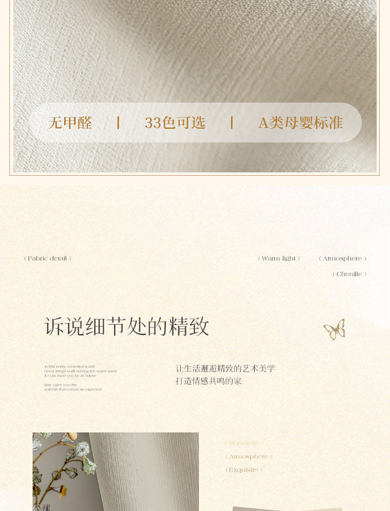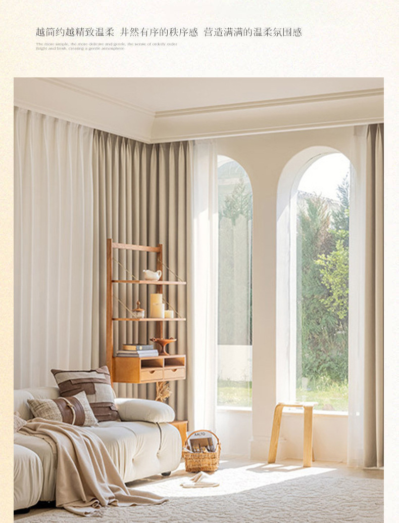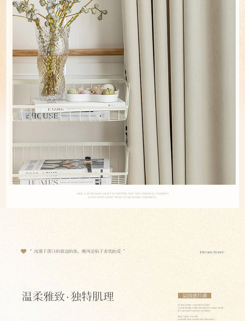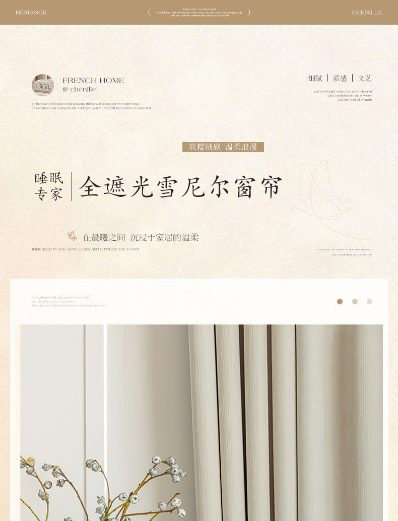 全遮光シェニールカーテン客間寝室フレンチクリーム風カーテン紹興柯橋軽贅沢カーテン生地カスタマイズ
