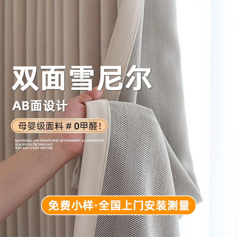 完全遮光両面ヘリンボーン柄カシミヤシェニールカーテン既製寝室用カーテン紹興柯橋カーテン生地カスタムメイド